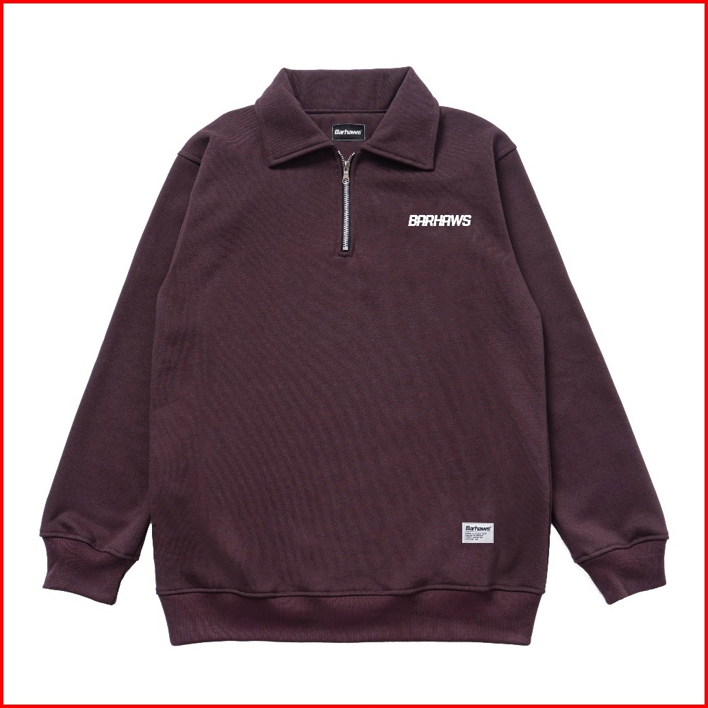 Barhaws - Sweater Half Zipper Rugby Simple Mahogany Brown