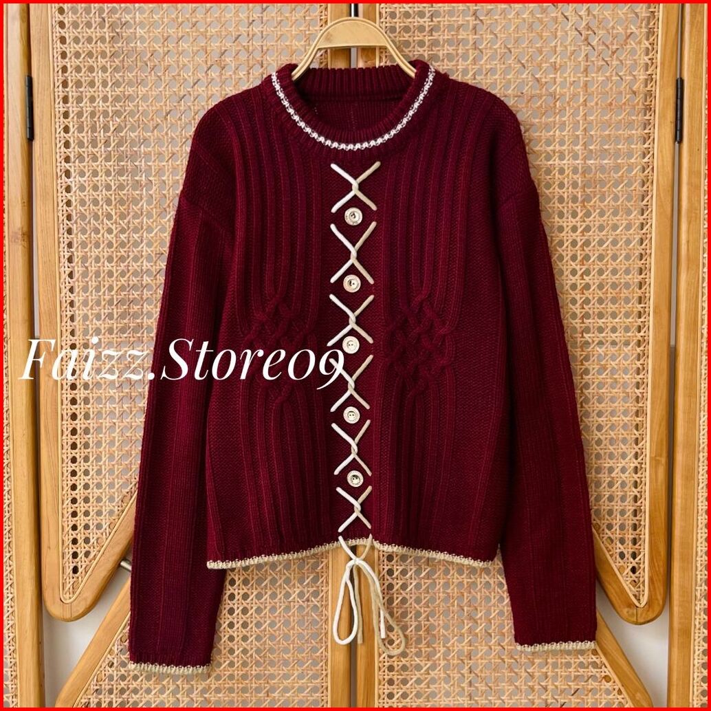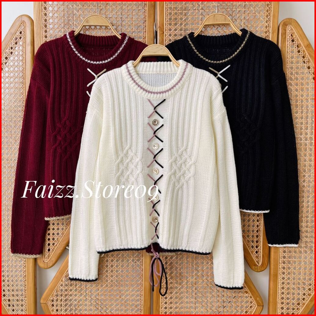 Keeni Blouse - Atasan Sweater Rajut Kerah Bulat Wanita Motif Tali Kur Kancing Korean Style Premium