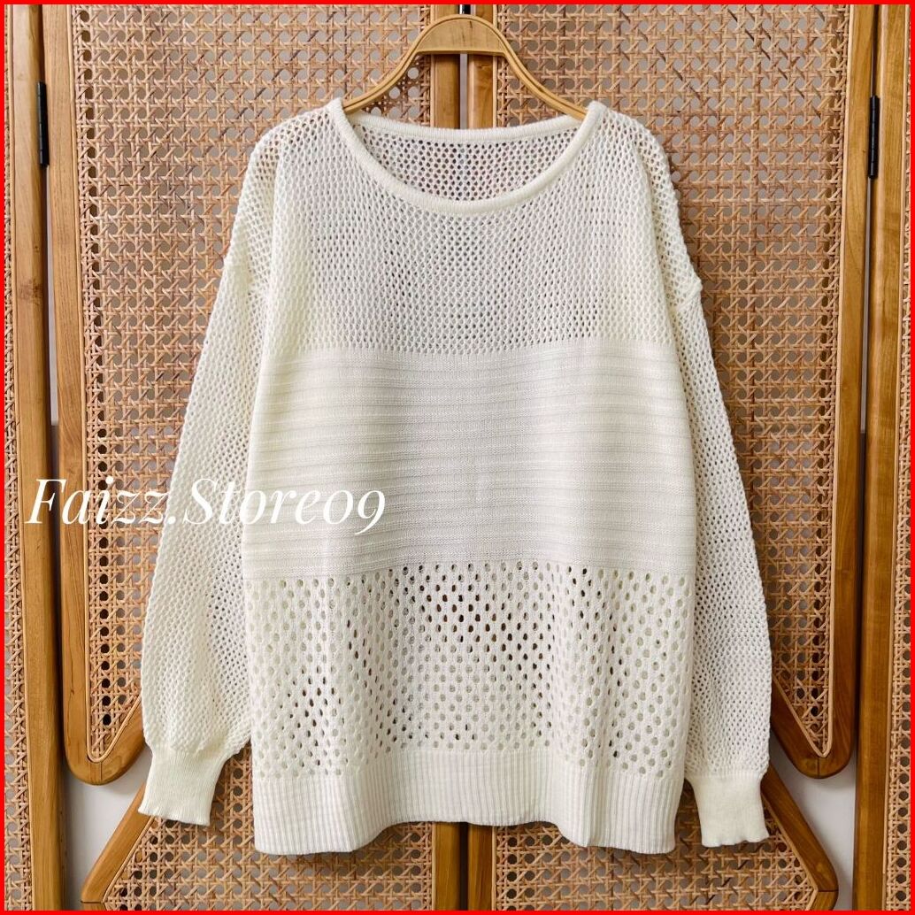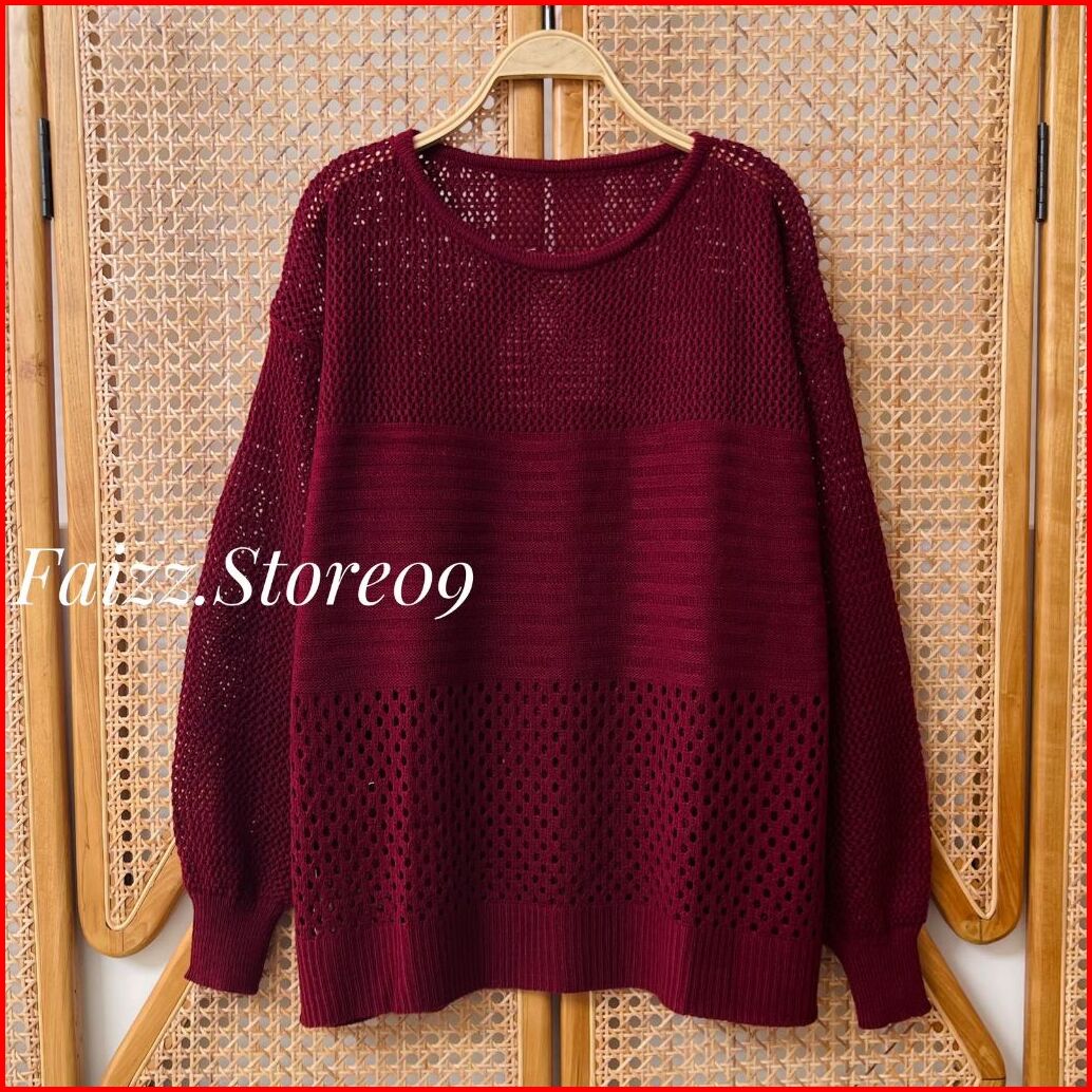 Munah Pointel Blouse Atasan Sweater Rajut Wanita Lengan Panjang Motif Jaring Korean Style Premium