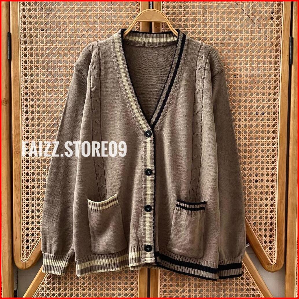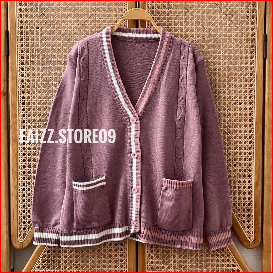 Cardy Edenn Knits - Atasan Cardigan Rajut Saku Kancing Wanita Motif Cable Kekinian Korean Style Premium
