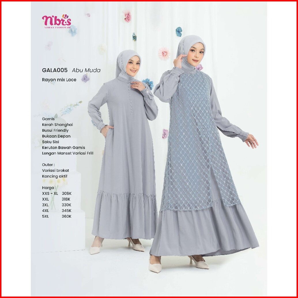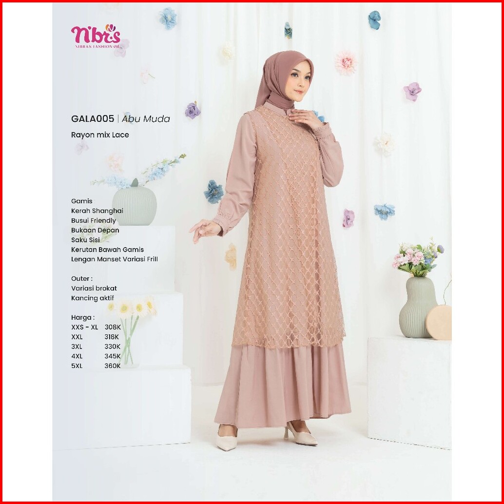 Gamis Nibras Terbaru Gala 005 Gamis Bahan Brokat Premium 2in1 Gamis Iner Outer Gamis Sayari Cantik Elegan