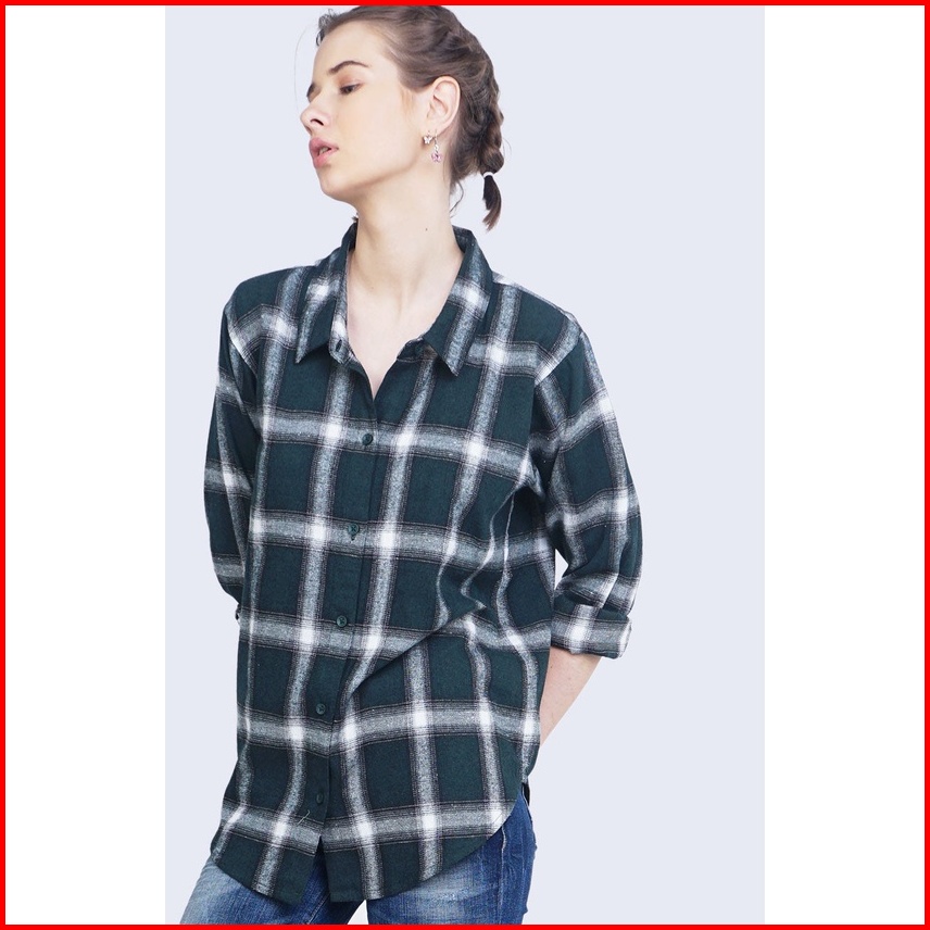Logo Jeans Kemeja Wanita Devi Green Offwhite 24896l5no