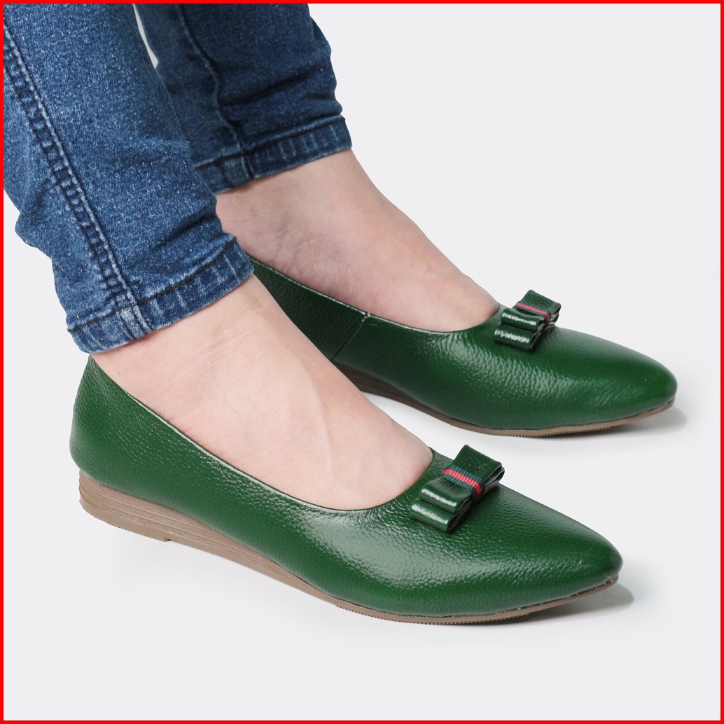 Cevany Sepatu Kerja Wanita Flats Shoes Formal Kulit Asli Geovani S - Pp01 Hijau
