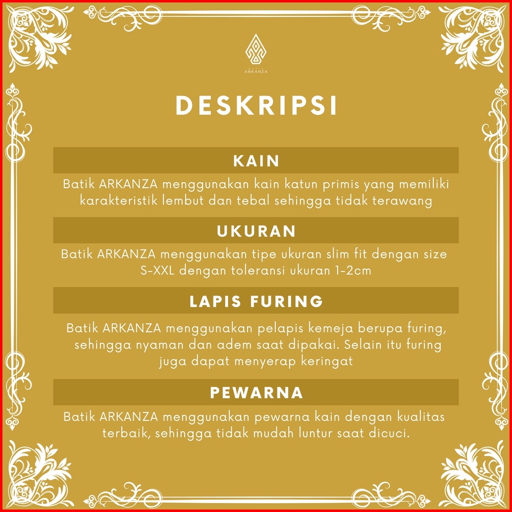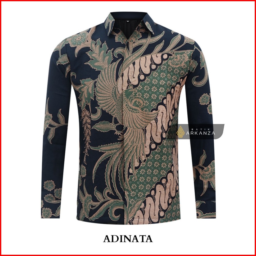 Atasan Kemeja Batik Arkanza Motif Adinata Atasan Baju Batik Pria Cowok Laki Laki Lengan Panjang Lapis Furing Slim Fit