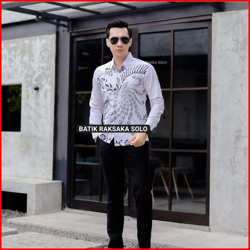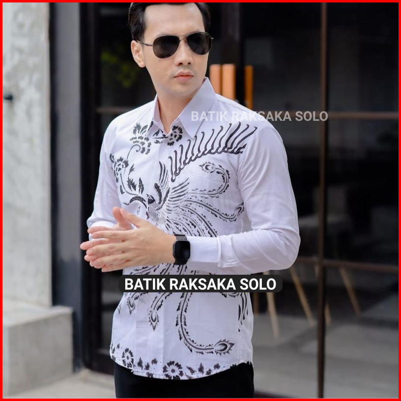 Kemeja Batik Pria Cowok Slimfit Premium Motif Arjuna Full Furing Baju Lengan Panjang Warna Putih