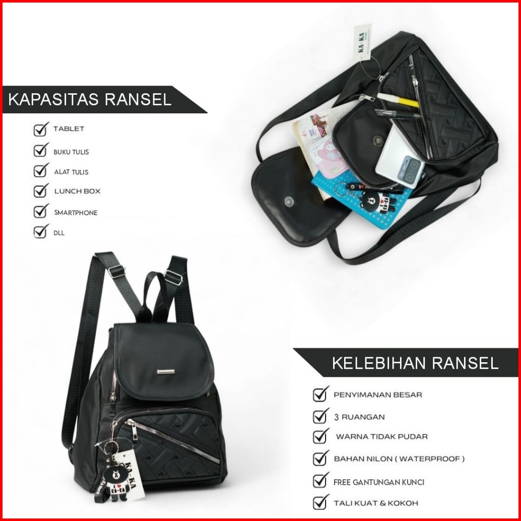K-k Tas Ransel Wanita Mini Model Terbaru Tas Gendong Cocok Buat Jalan-jalan Santai Bahan Parasut Anti Air