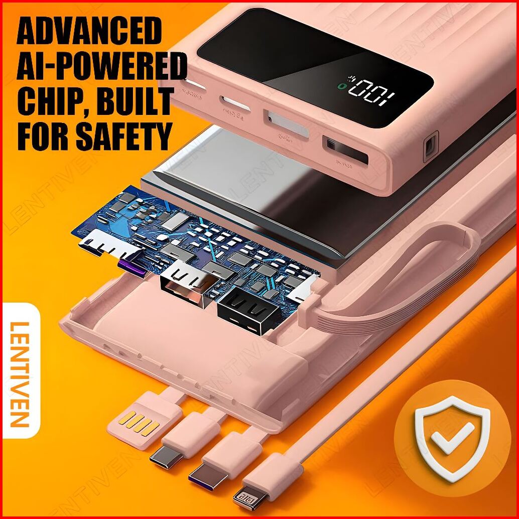 Salys Lentiven Powerbank 30000 Mah Mini With 4 Kabel Data Usb Fast Charging Led Senter Display