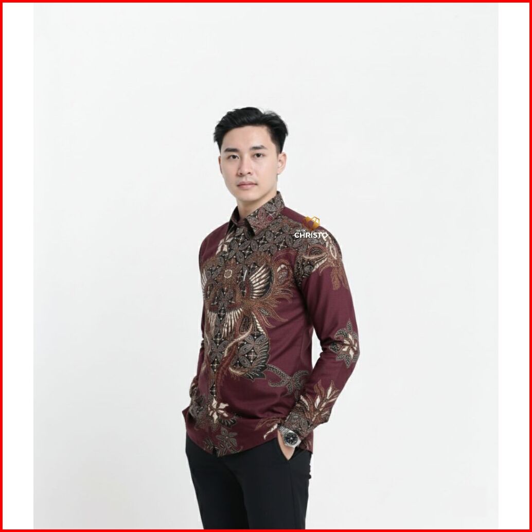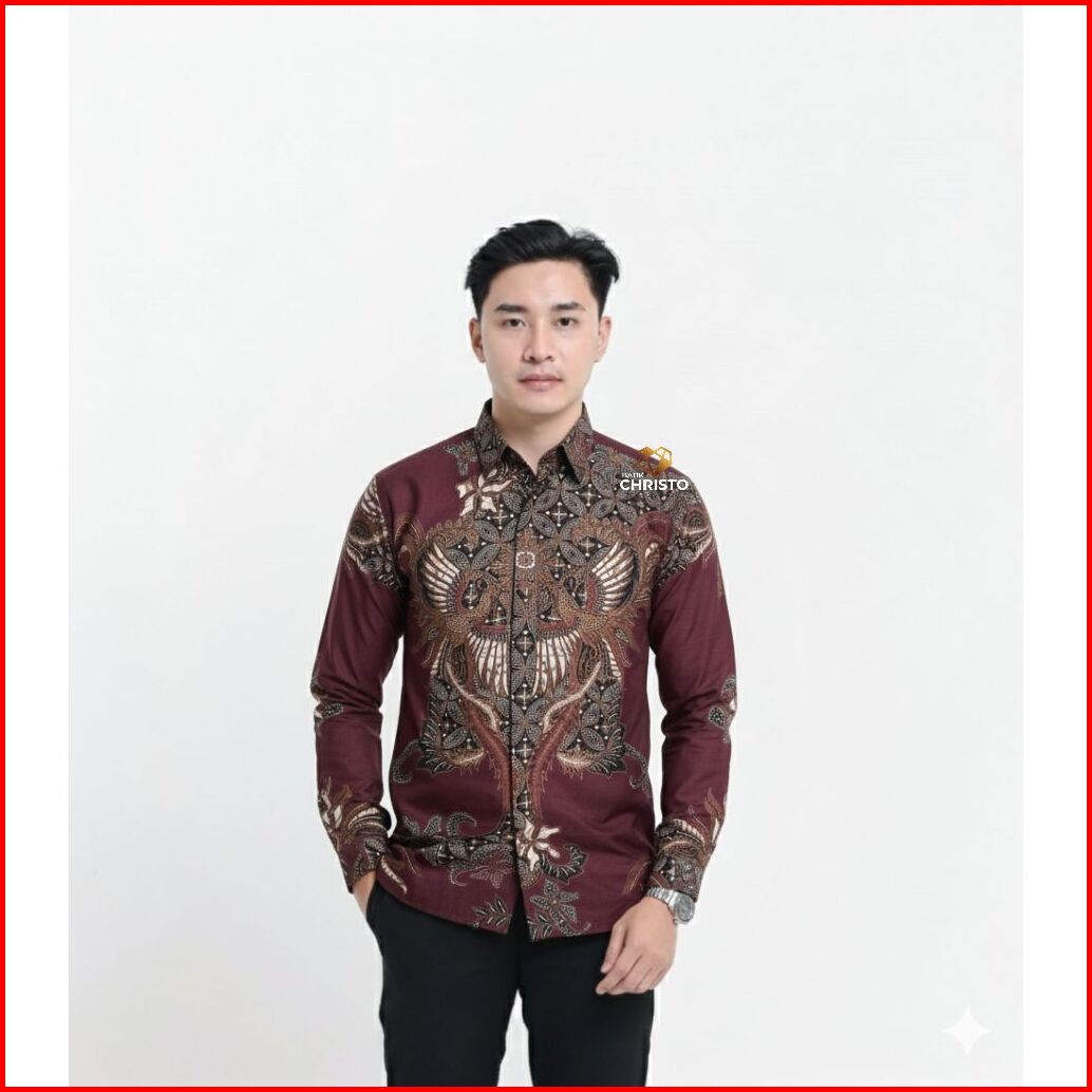 Kemeja Batik Pria Baju Lengan Panjang Slimfit Lapis Furing Batik Christo 1228 Bahan Katun Premium Elegan Motif Formal
