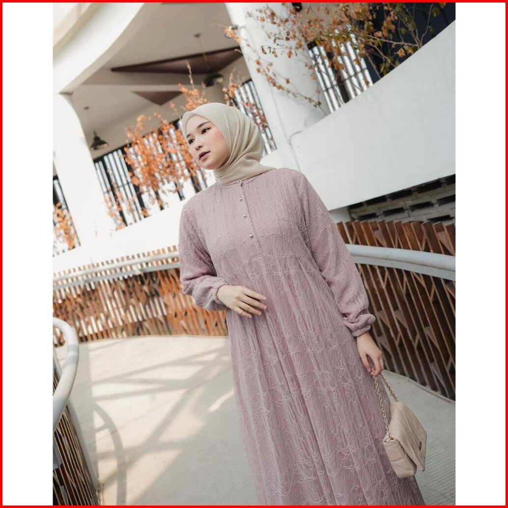 Mayumi Dress Bahan Silk Mix Chantily Busui Friendly Gamis Brukat Terbaru Gaun Kondangan Muslimah Wanita