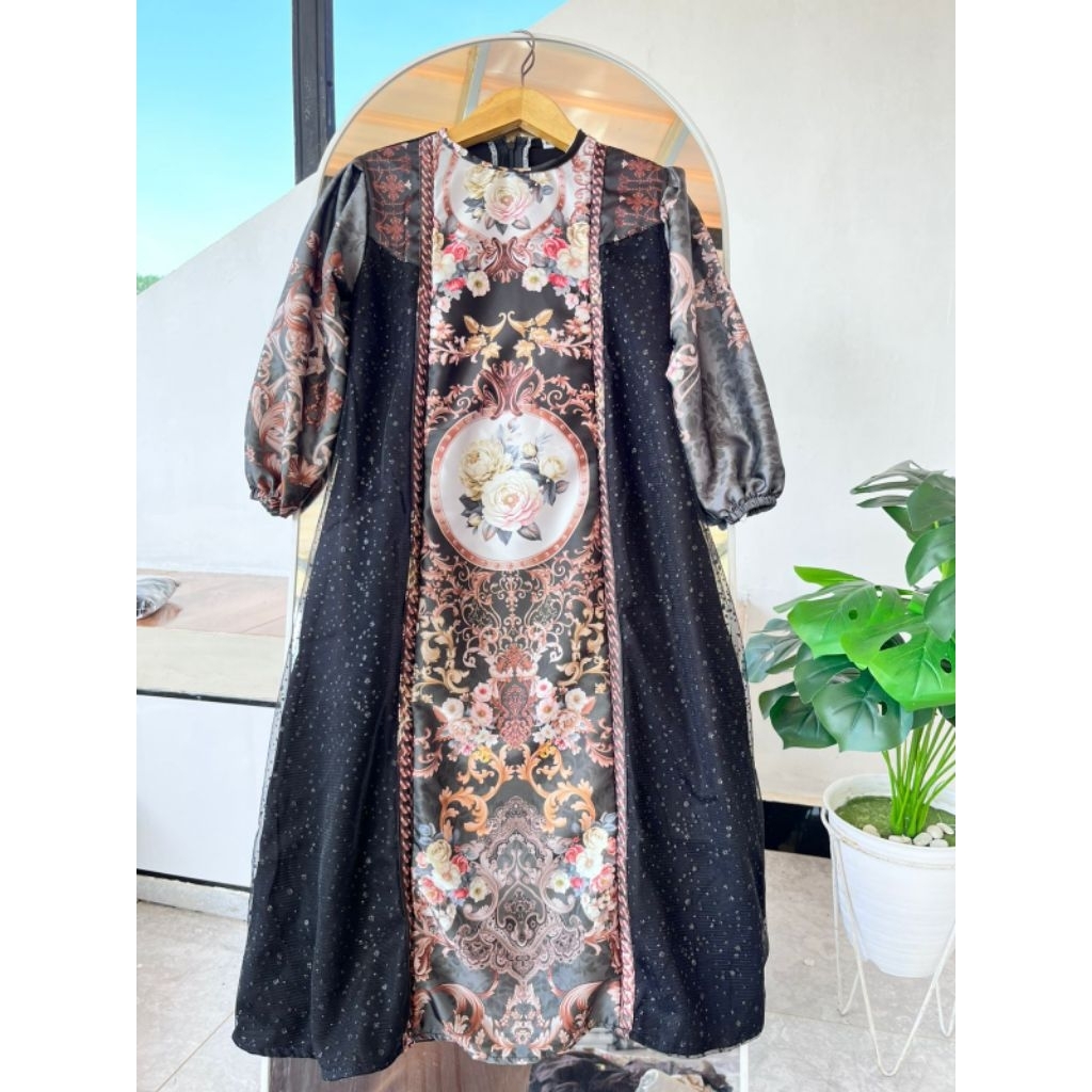 Gamis Salma Anak Dress Silk Motif Sultan mix Twill Gamis Terbaru Trendy Baju Muslim
