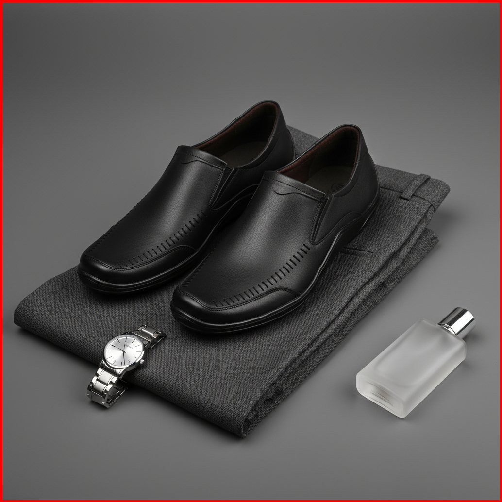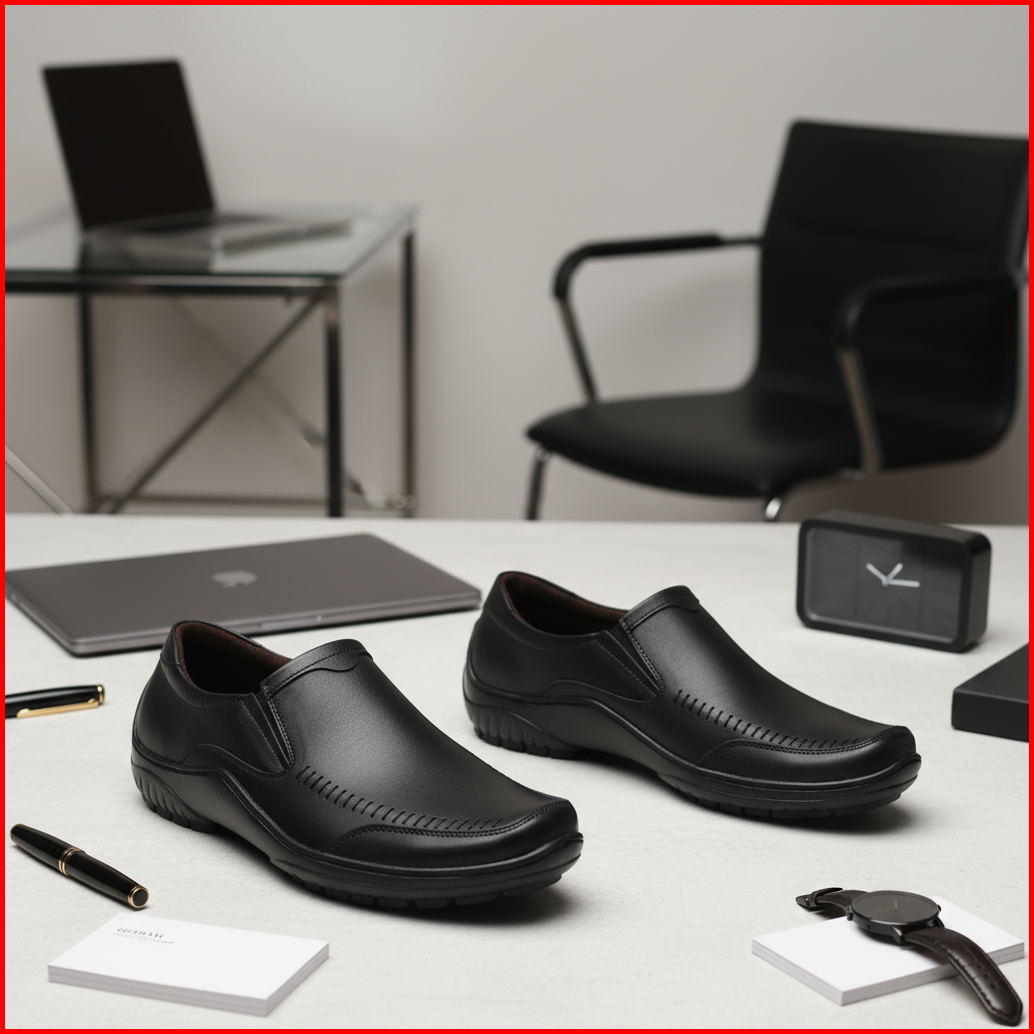 Cevany Sepatu Pantofel Pria Formal Kulit Asli Geovani S - P03 Hitam