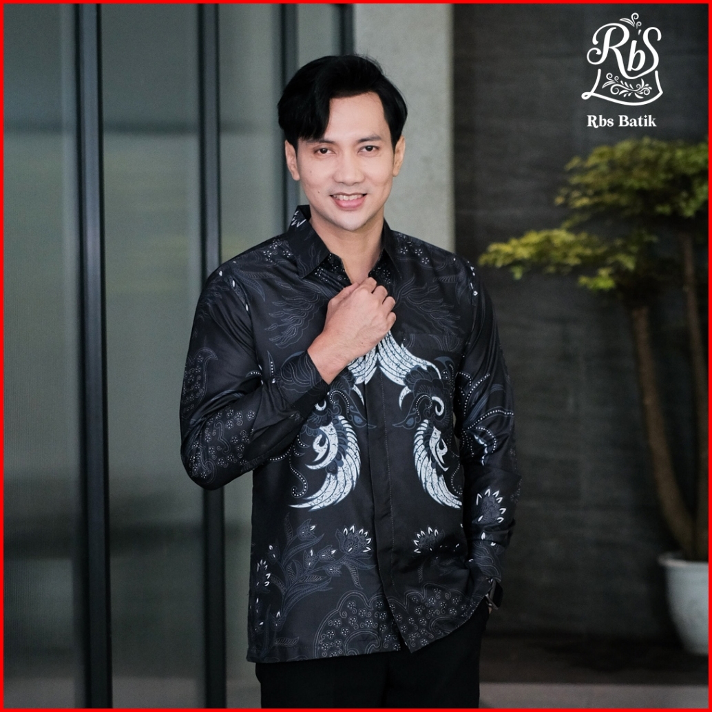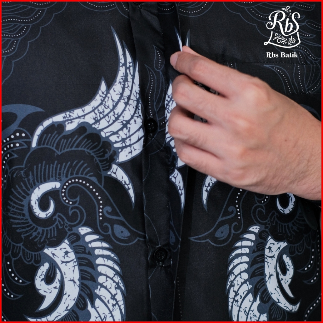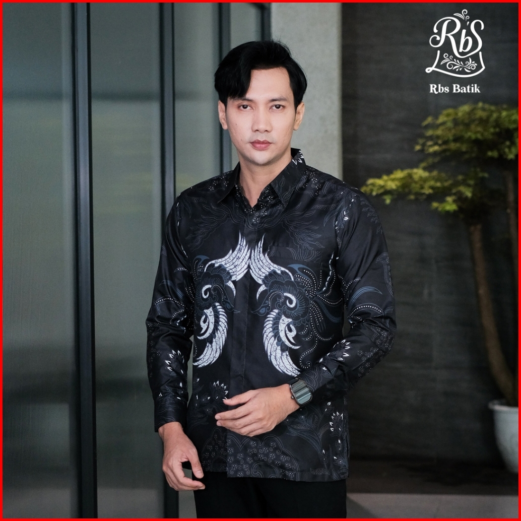 Rbs Batik - Kemeja Batik Pria Aqiel Slimfit Lapis Furing Warna Hitam Putih Motif Sayap Cendrawasih