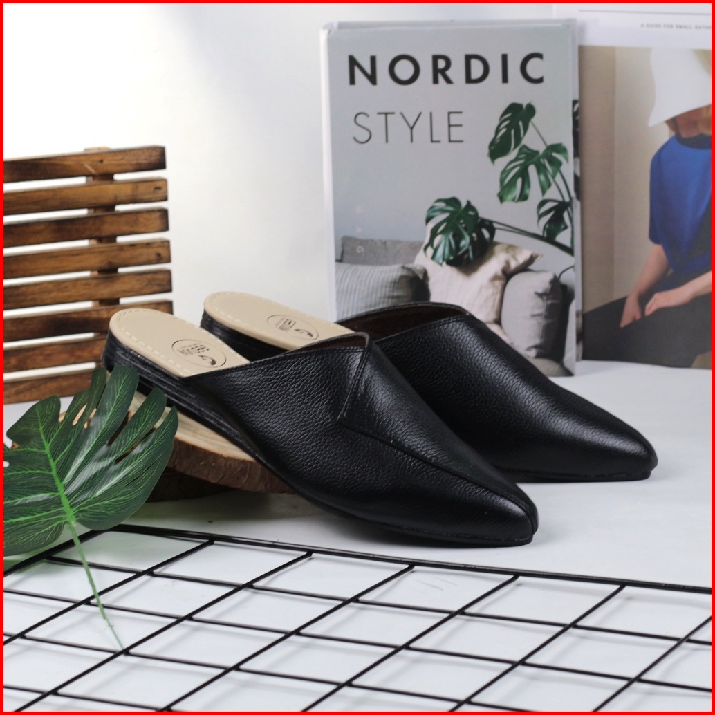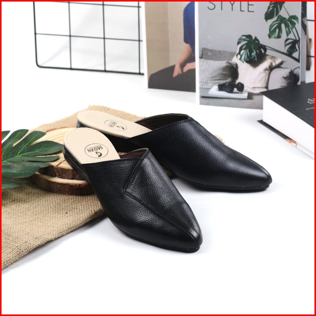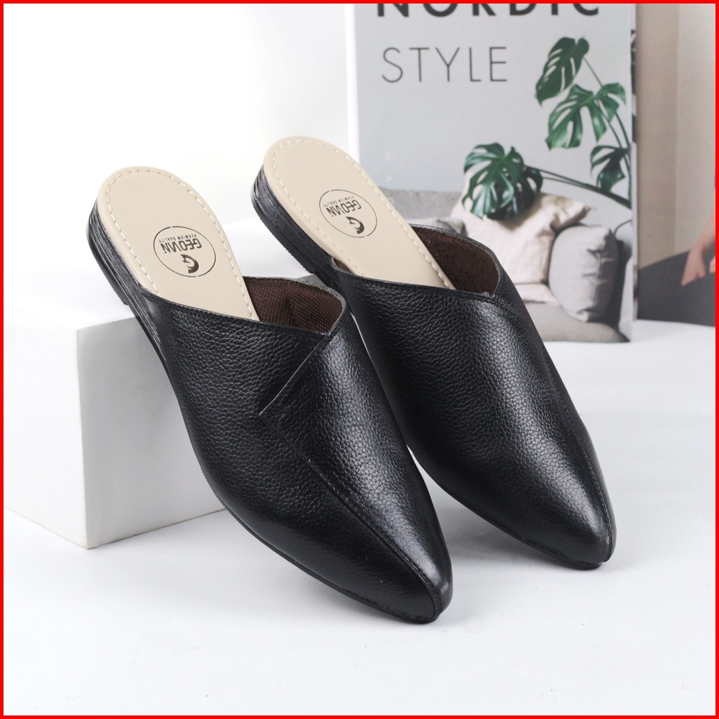 Cevany Sendal Wanita Bustong Kulit Asli Geovani S - Hitam Gb02