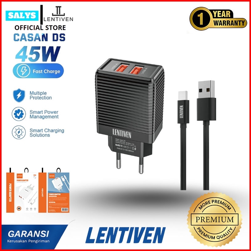 Salys Lentiven Charger Pd 45w Casan 2.4a Fast Charging Adaptor Qc3.0 Type-c Adapter Untuk Iphone Xiaomi Phone Ds