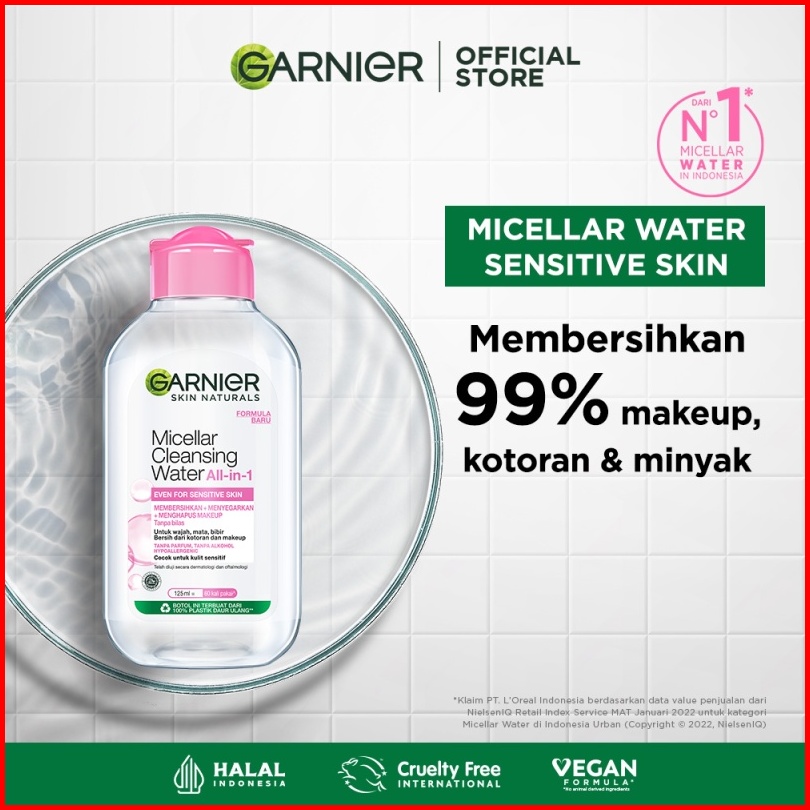 Garnier Micellar Water Pink Skin Care 125ml Skincare Cleansing - Pembersih Wajah Make Up Untuk Kulit Sensitif Micellar C
