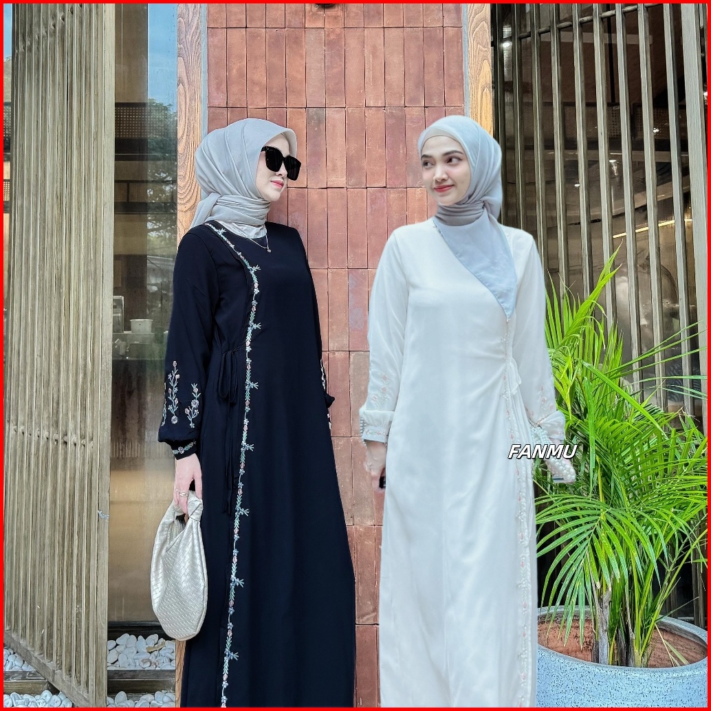 Fanmu Gamis Putih Muslim Wanita Busana Dress Gamis Hitam Lebaran
