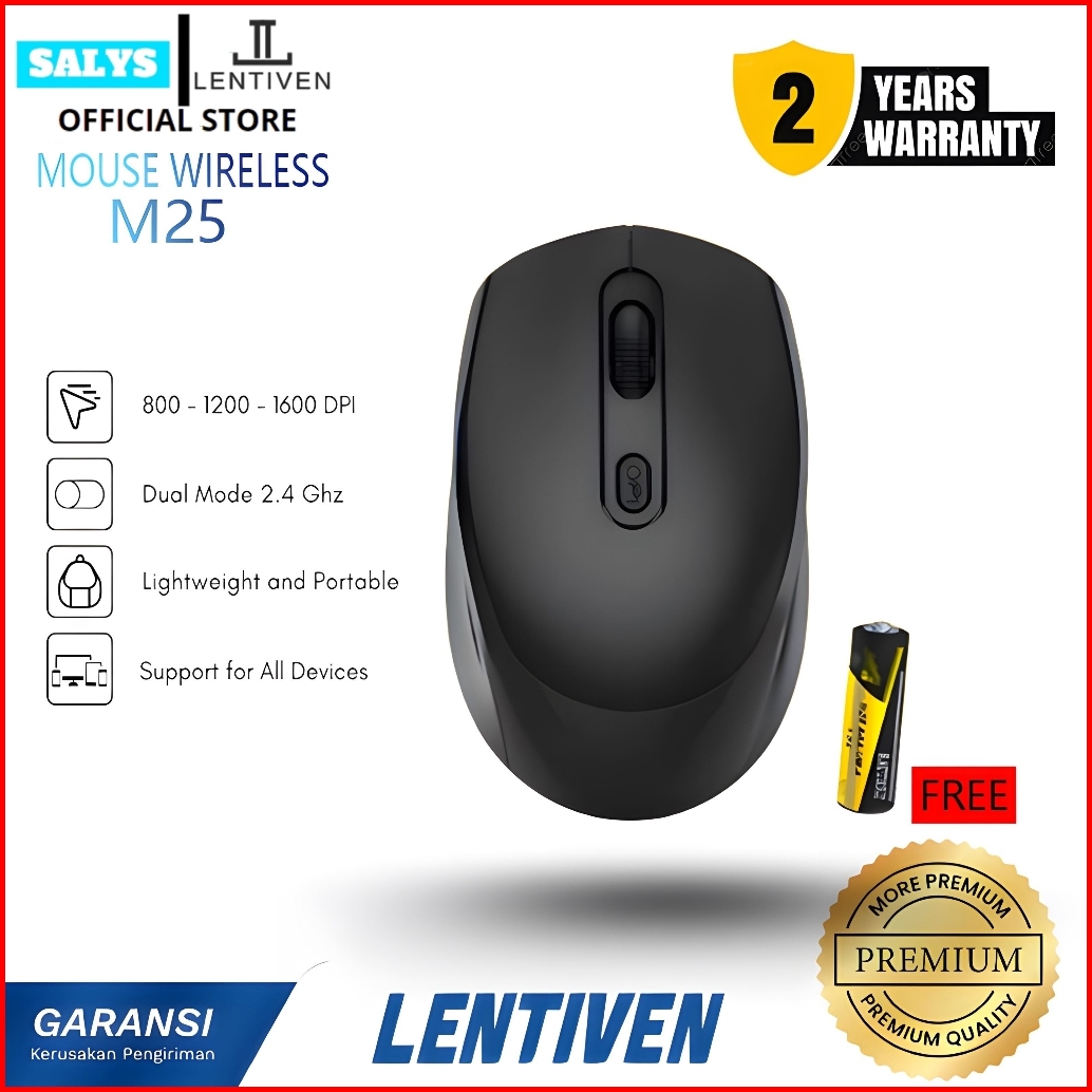 Mouse Wireless Lentiven M25 Usb 2.4g 1600dpi Untuk Laptop Pc Tanpa Kabel Receiver Garansi 1 Tahun