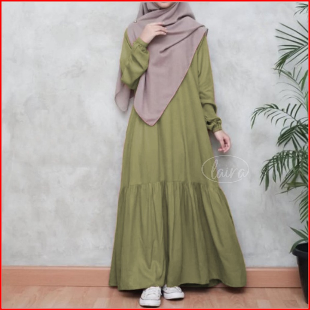 Laira Fashion Muslim Gamis Kekinian Wanita Remaja Serut Tali Lengan Karet Wolpis Premium Gamis Santri Remaja Putri Kekin
