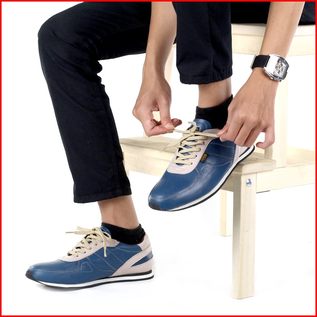 Cevany Sepatu Sneakers Pria Kulit Asli Valiente - C044 Navy