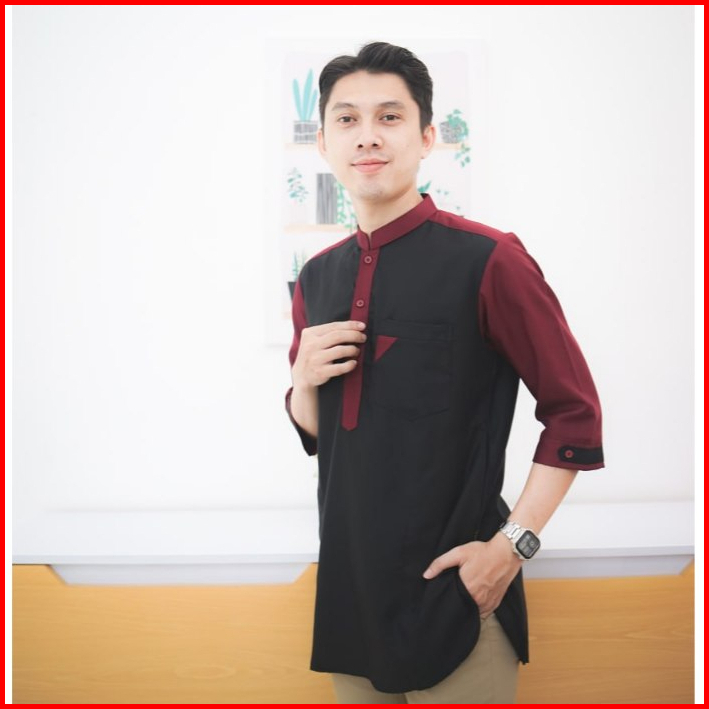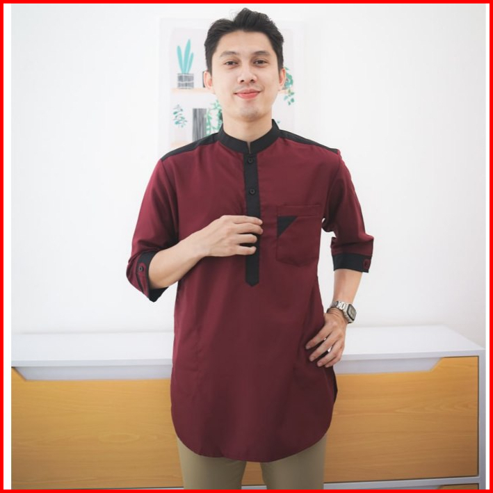 Baju Koko Kurta Al-hayat Baju Santri Pria Muslim Dewasa Lengan 3 4 Bahan Katun Toyobo