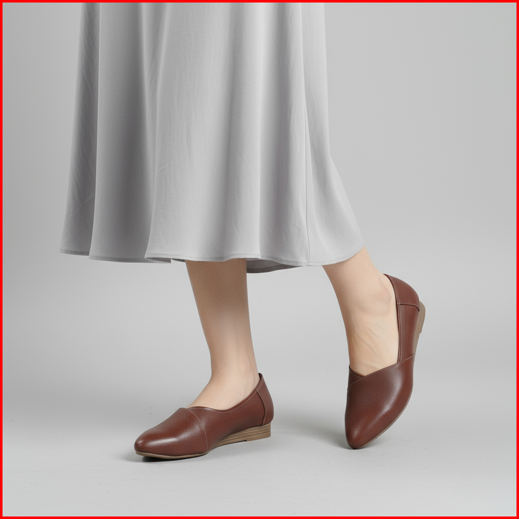 Cevany Sepatu Kerja Wanita Flat Formal Kulit Asli Geovani S - Adriana Coklat
