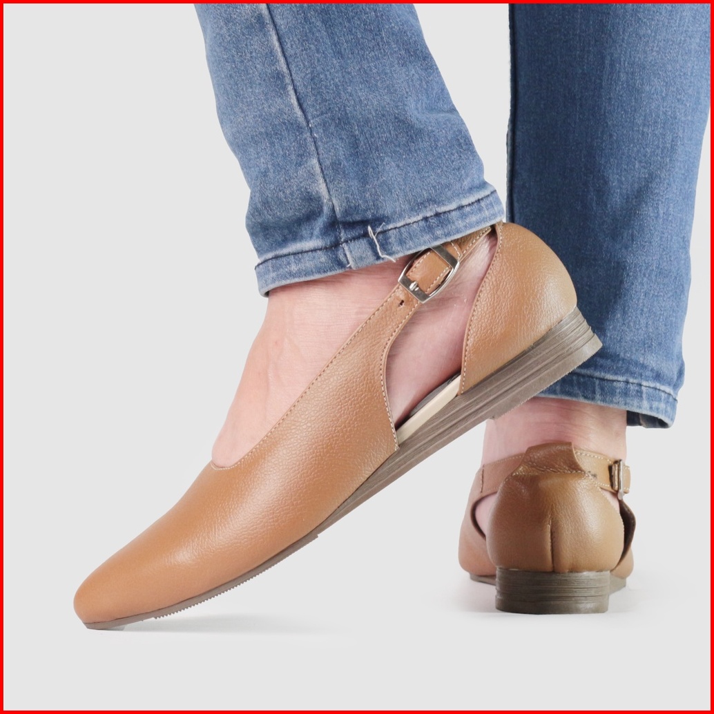 Cevany Sepatu Kerja Wanita Flat Formal Kulit Asli Geovani S Karamel - Pp04