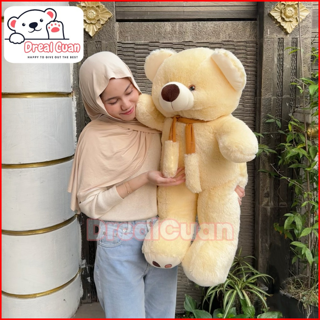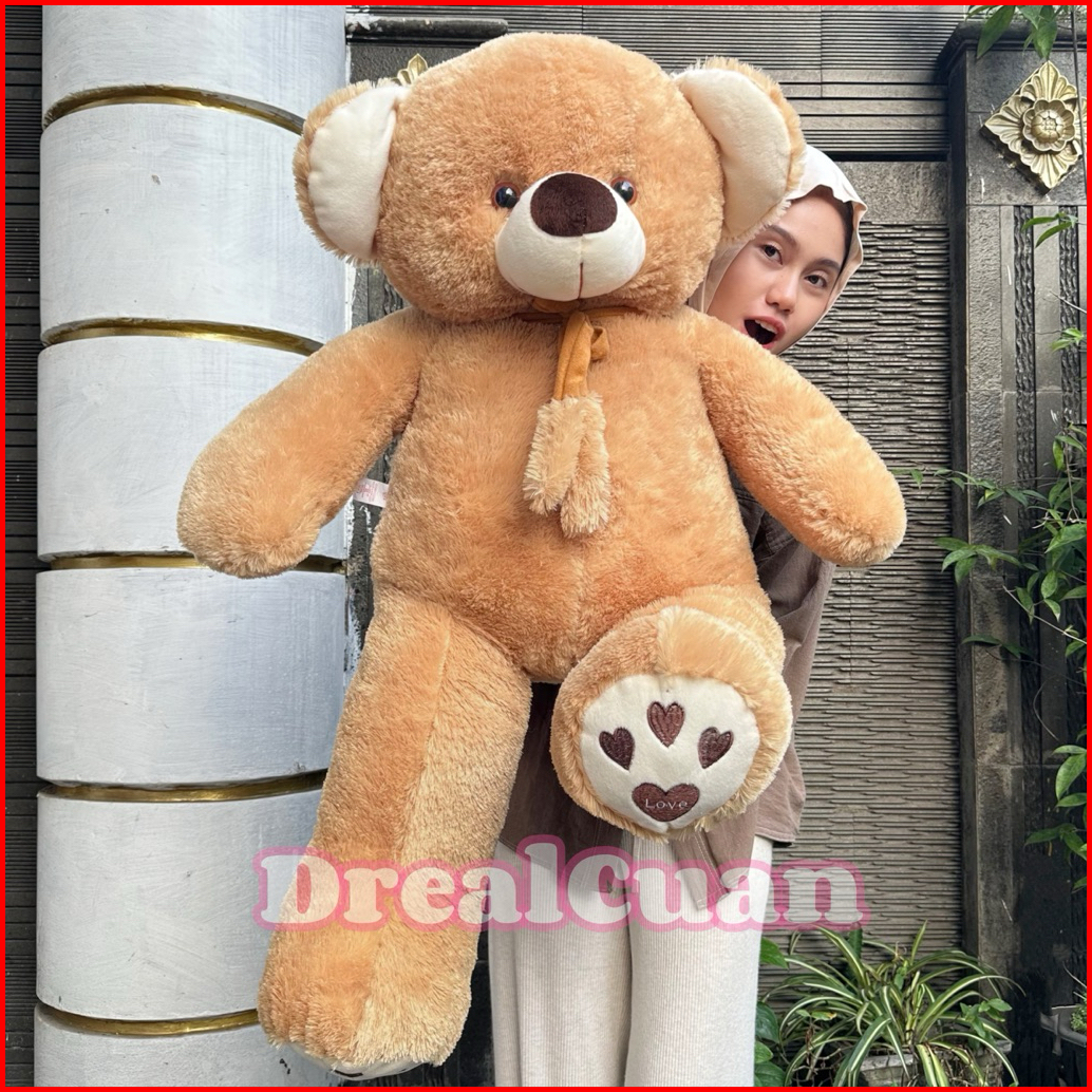 Boneka Teddy Bear Beruang Besar Jumbo Chubby Syal Telapak Love 105cm