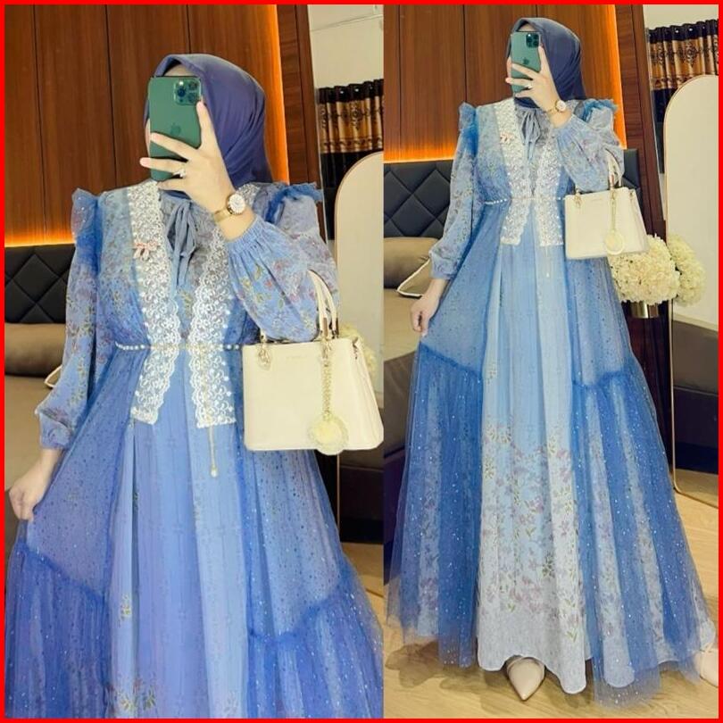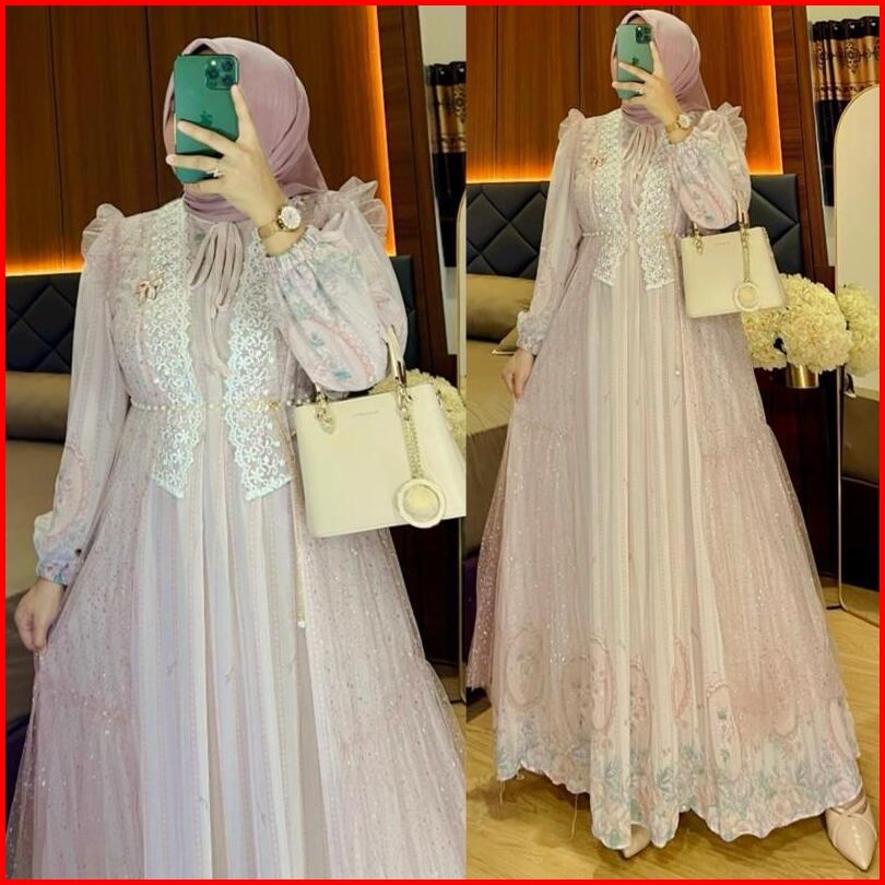 Niaca Dress Gliter Renda Mewah Gamis Niaca Mewah Terbaru Kekinian Gamis Pesta 2025