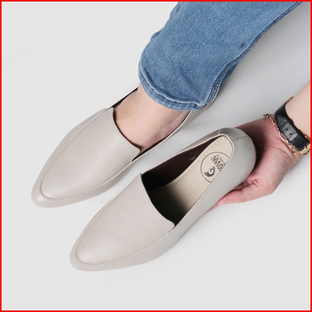 Cevany Sepatu Flat Shoes Wanita Kulit Krem Charlotte