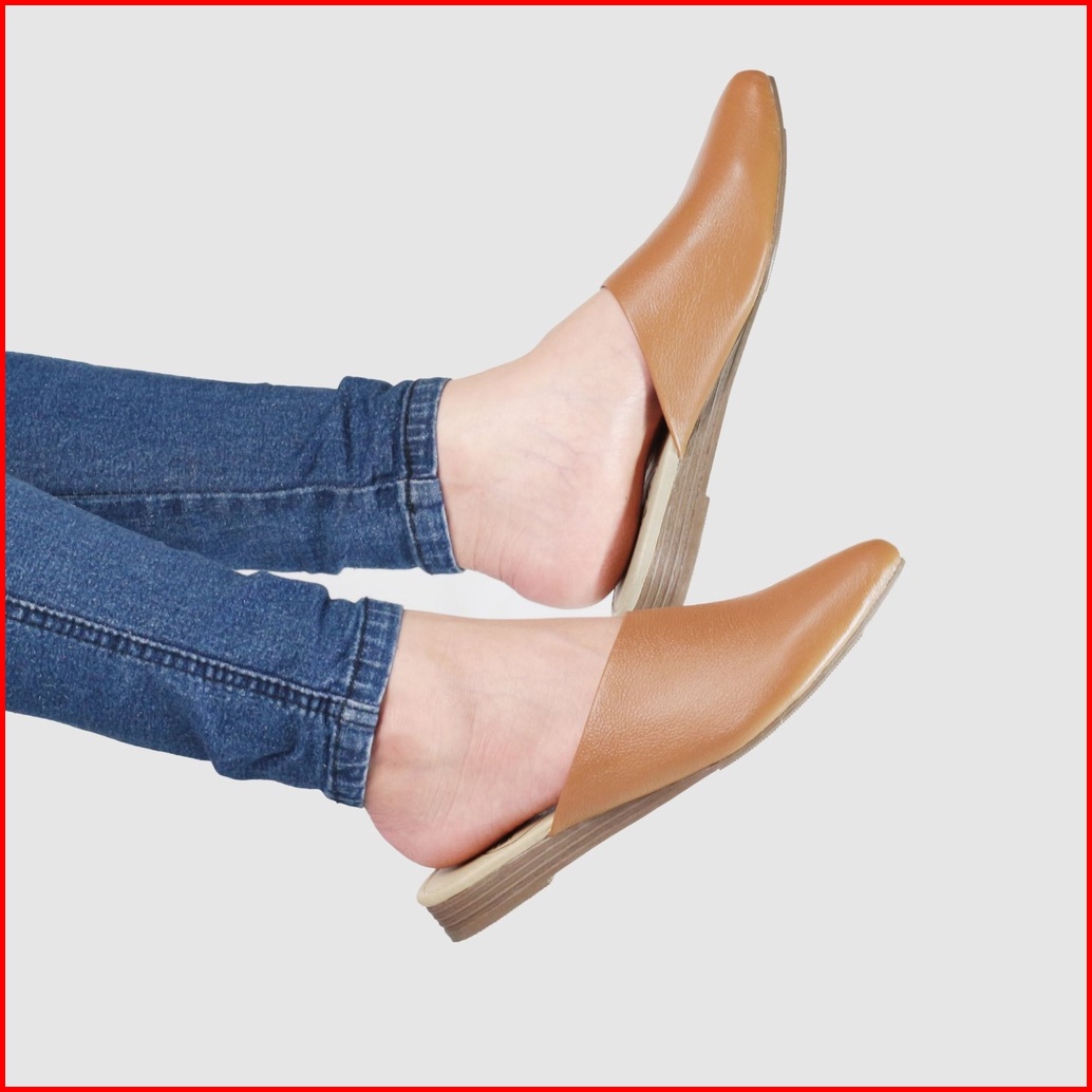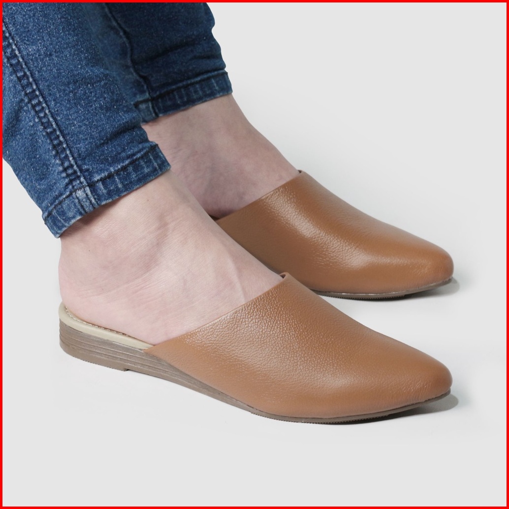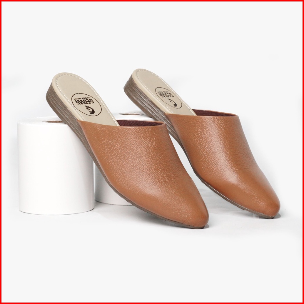 Cevany Sendal Wanita Bustong Kulit Asli Geovani S - Karamel Gb01