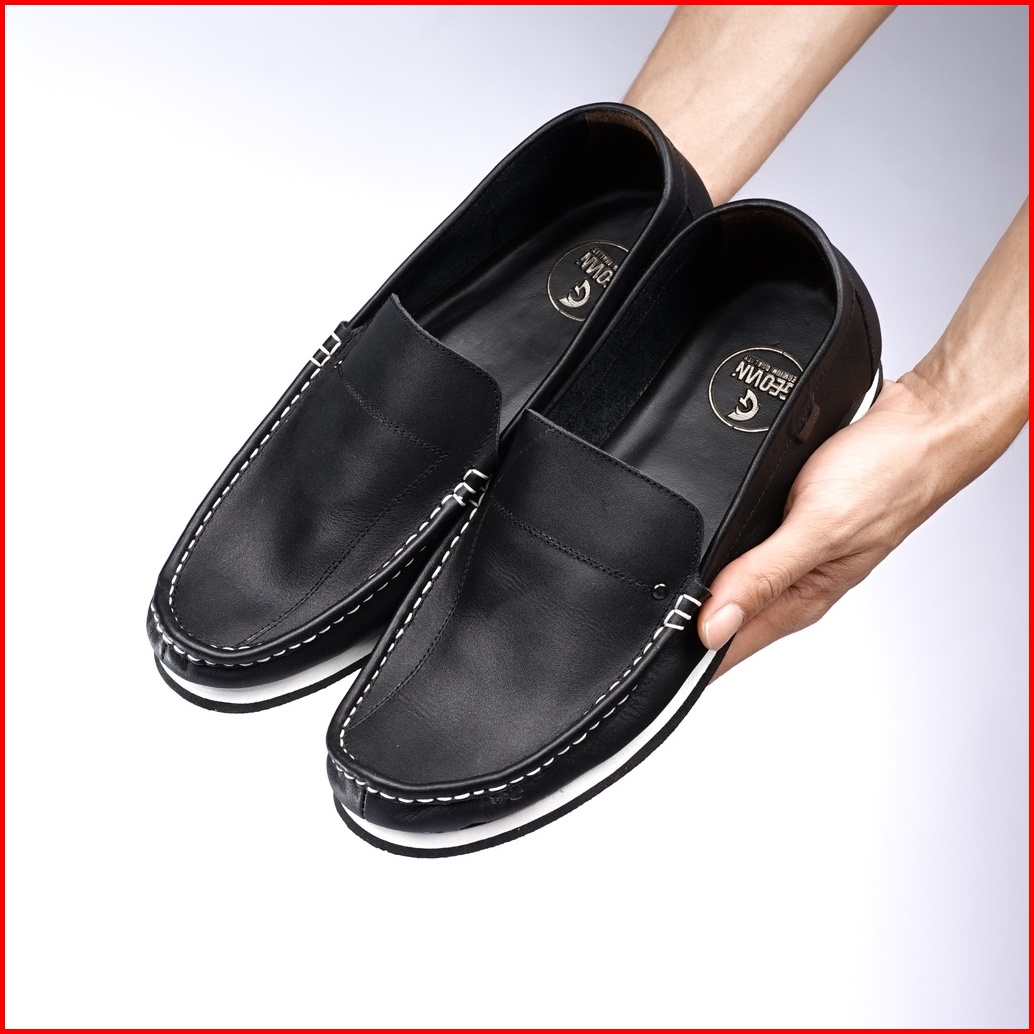 Cevany Sepatu Pria Kasual Slip On Kulit Asli Geovani S - G08 Hitam