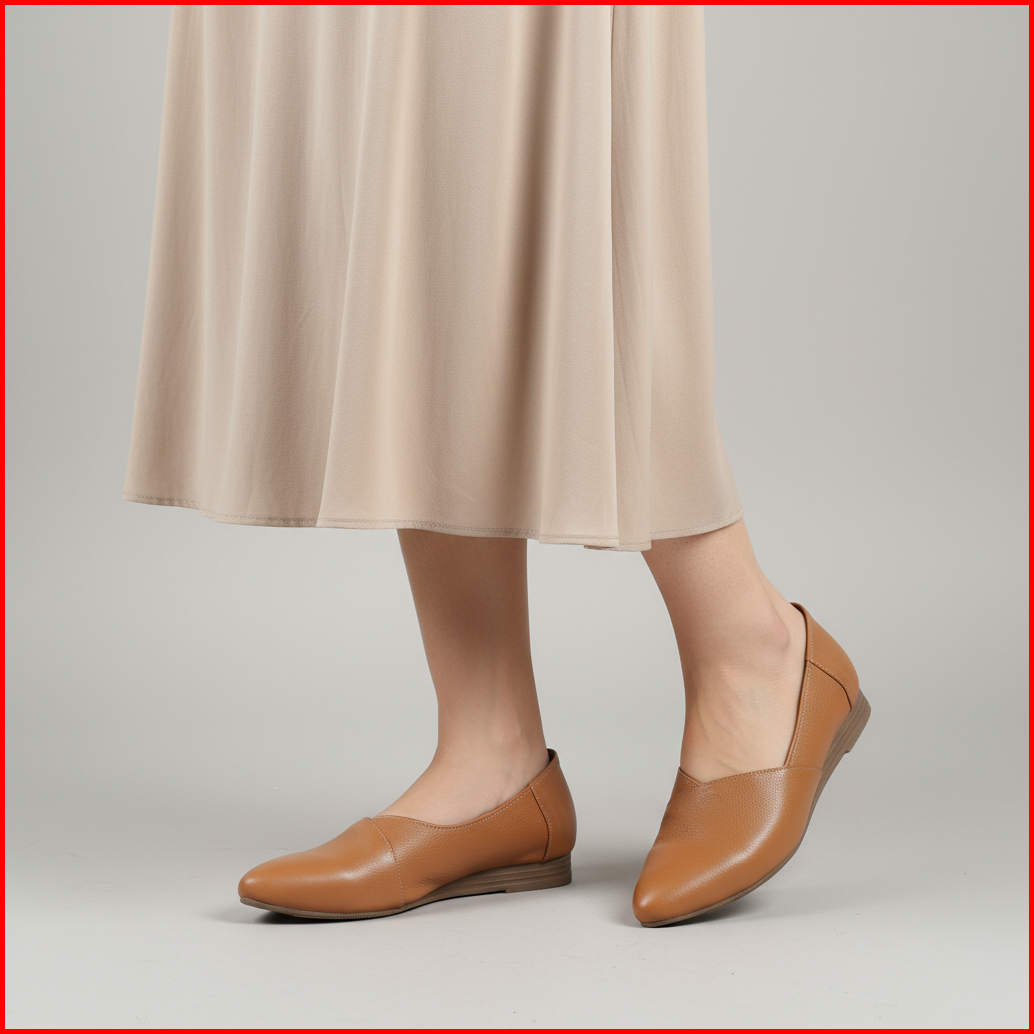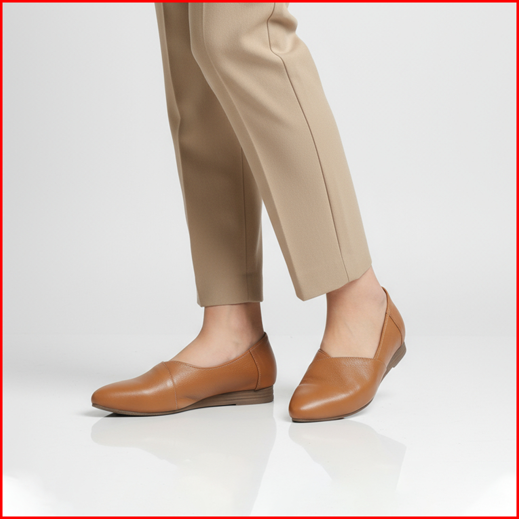 Cevany Sepatu Flat Shoes Wanita Kulit Karamel Adriana