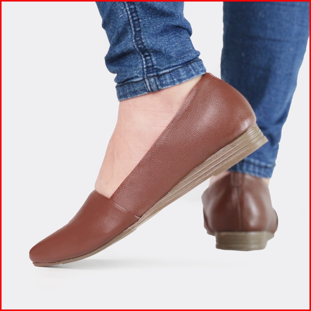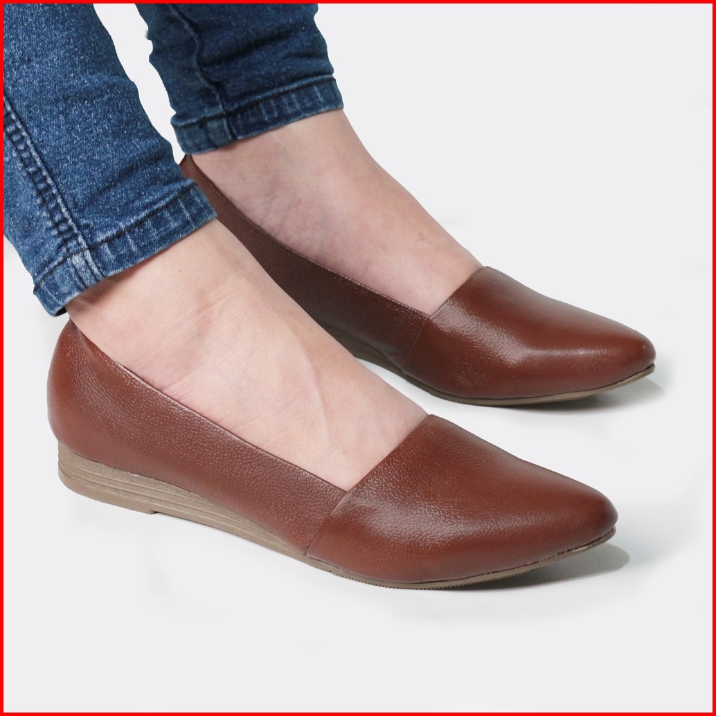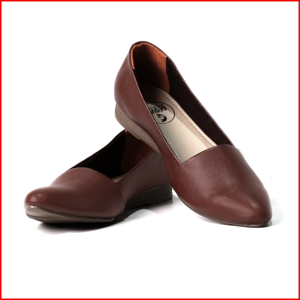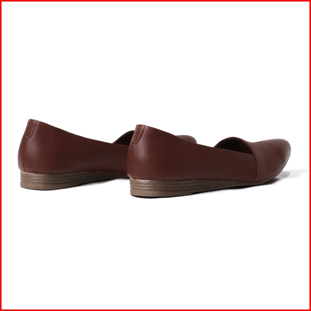 Cevany Sepatu Kerja Wanita Flat Formal Kulit Asli Geovani S - Annabelle Coklat