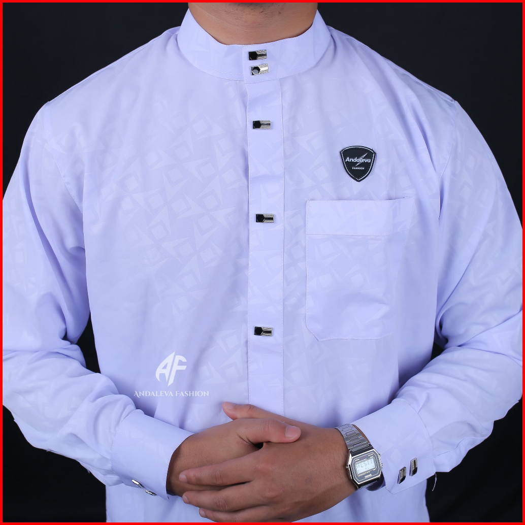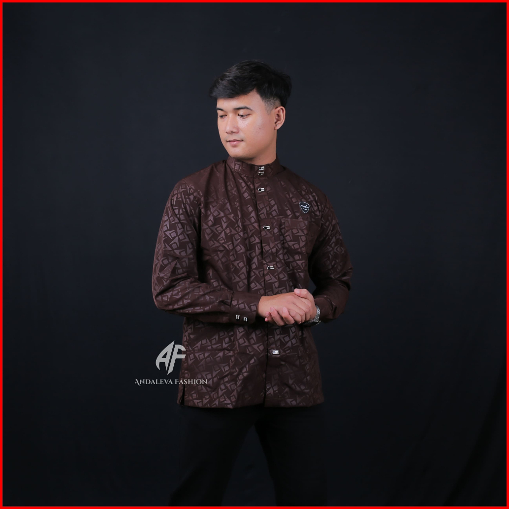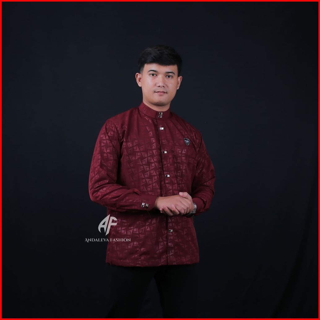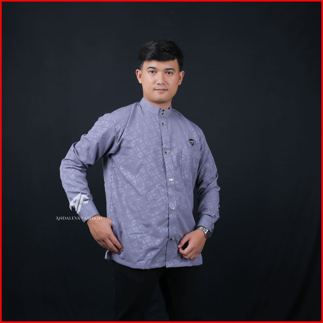 Kemeja Koko Pria Lengan Panjang Bahan Embos Motif Suriken Tampil Rapi Elegan