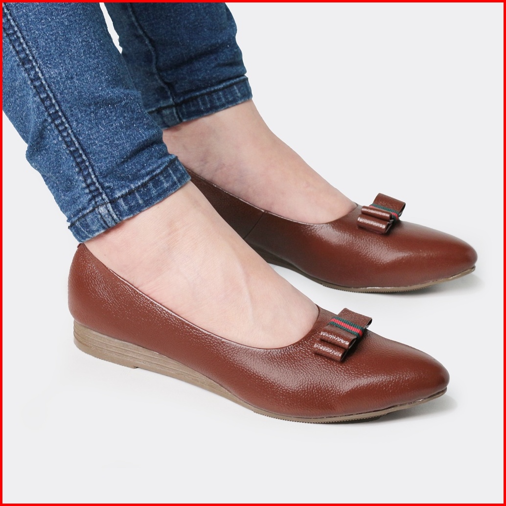 Cevany Sepatu Kerja Wanita Flat Formal Kulit Asli Geovani S - Pp01 Coklat