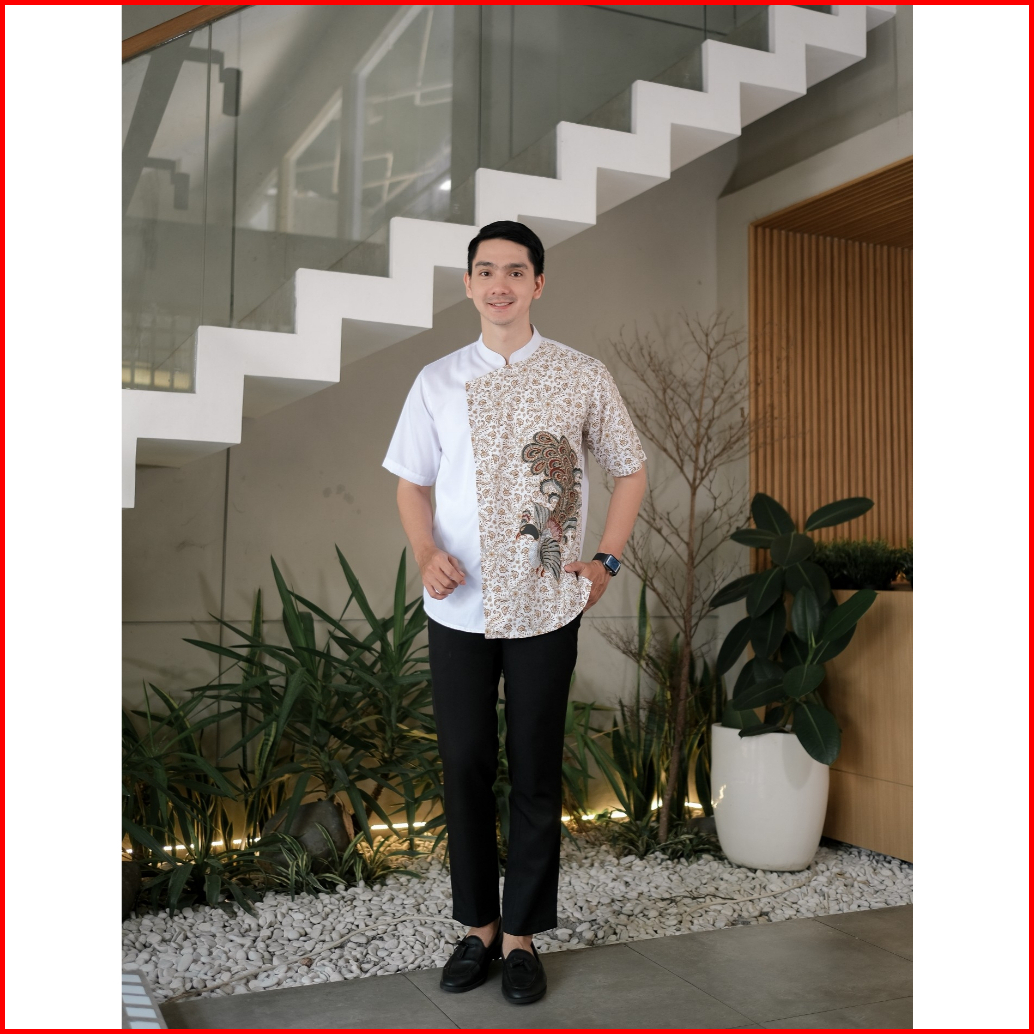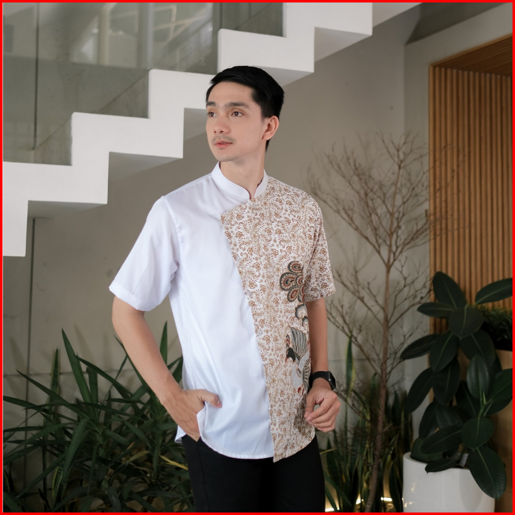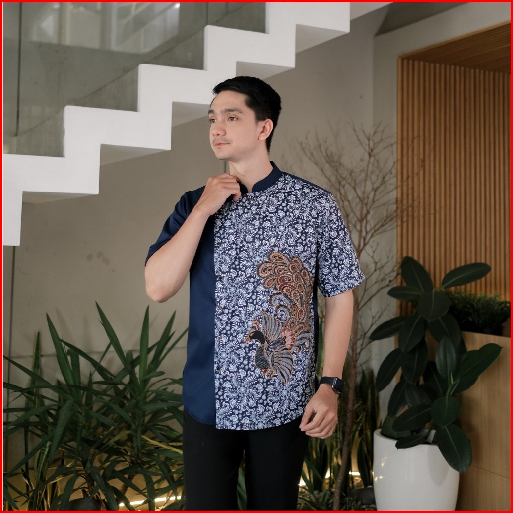 Koko Batik Pria Motif Merak Lengan Pendek Kerah Sanghai Dengan Kancing Samping Adem Lembut Dalah