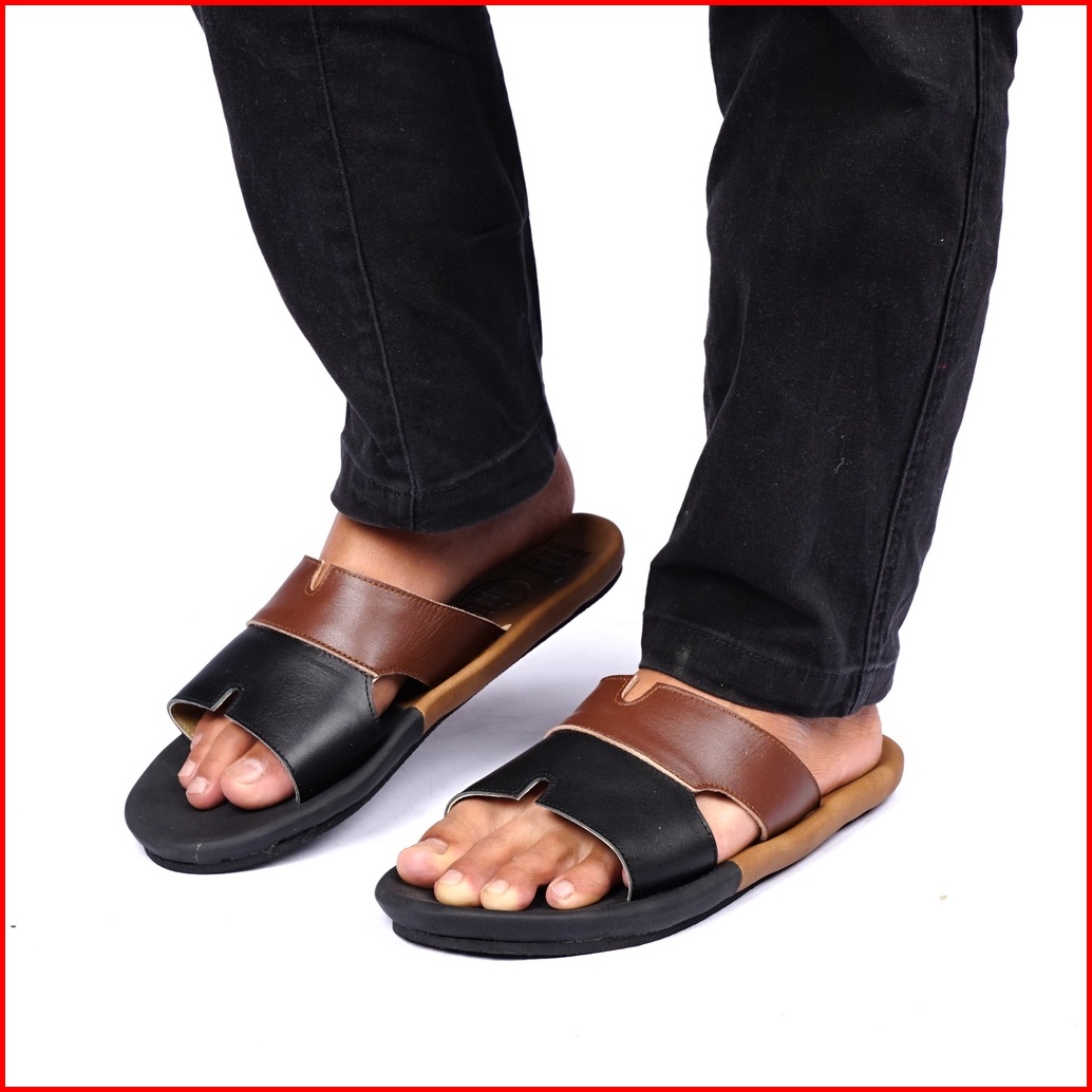 Sandal Pria Kulit Cevany Sc11 - Coklat Hitam