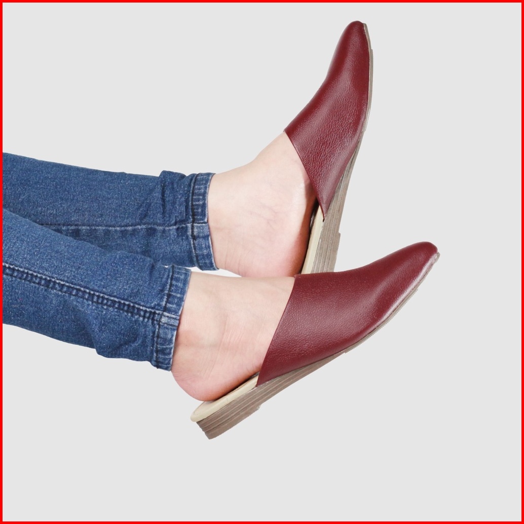Cevany Sendal Wanita Bustong Kulit Asli Geovani S - Maroon Gb01