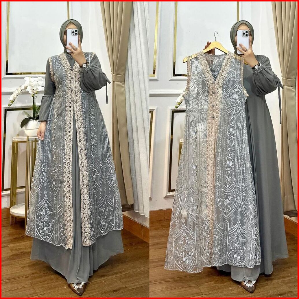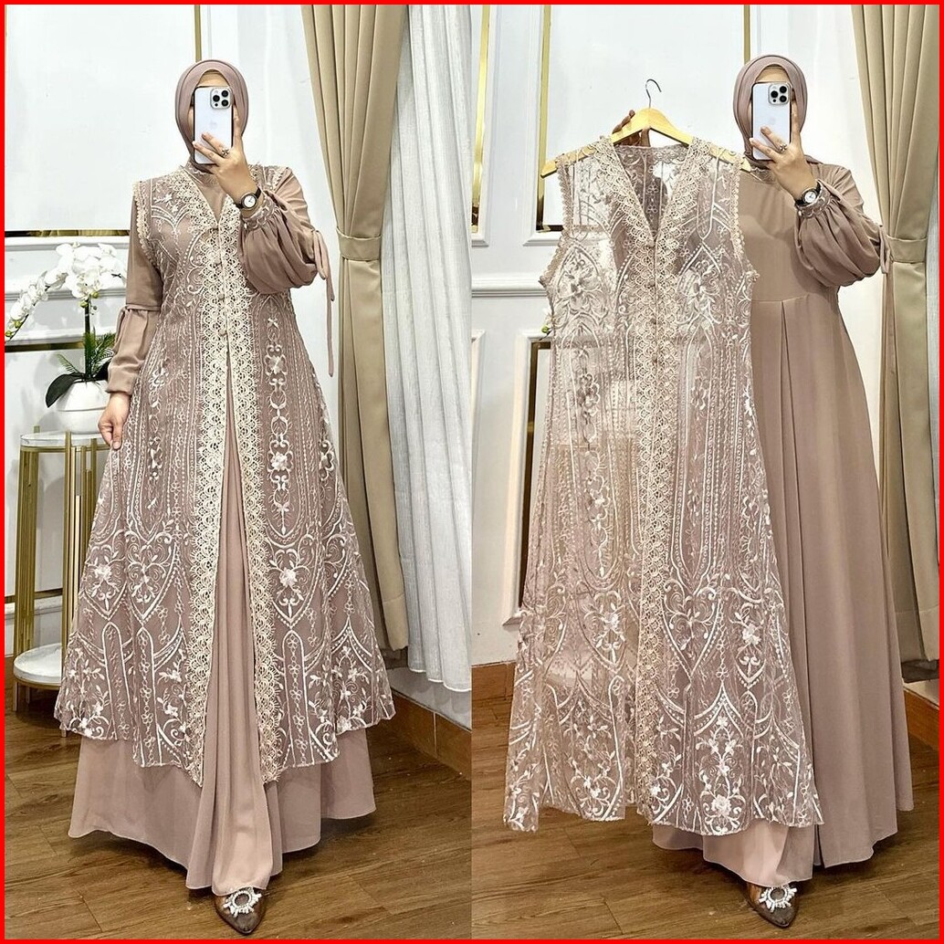 Vallina Outfit - Naura Maxy Gamis Muslim Wanita Matt Ceruty Babydoll Mix Brukat Ootd Pesta Kondangan