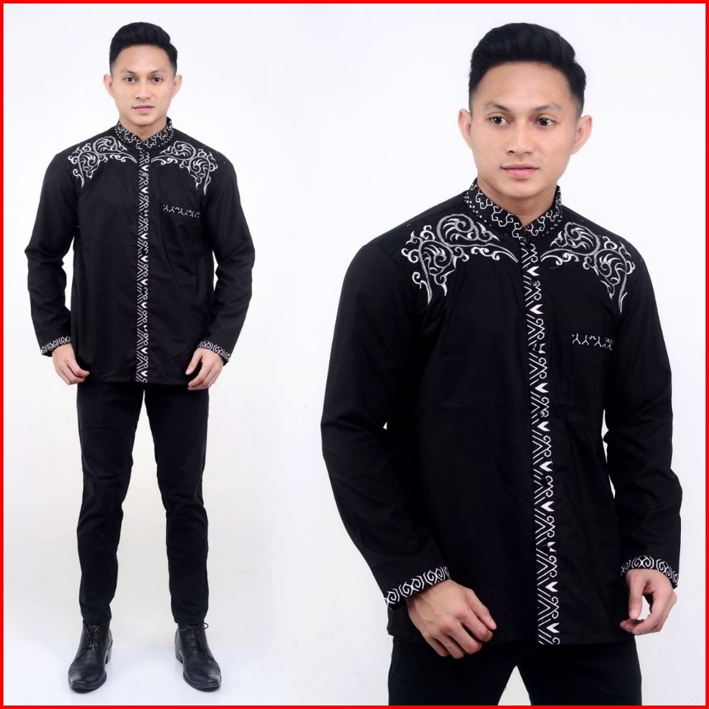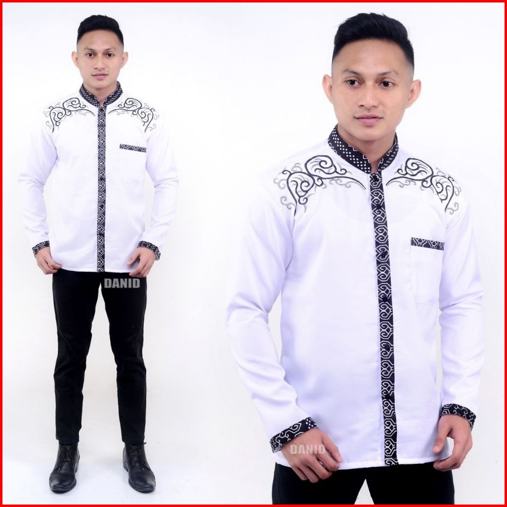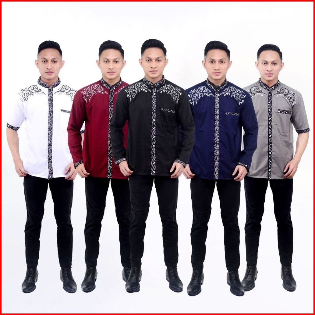 Baju Koko Bordir Kombinasi Batik Lengan Panjang Dan Pendek