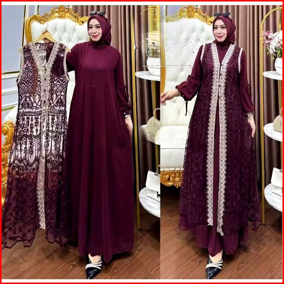 Qinara Dress Set Outer Jumbo M L Xl Xxl Xxxl Xxxxl Gamis Kondangan Brukat Wanita Terbaru 2024 Dress Pesta Polos Wanita K