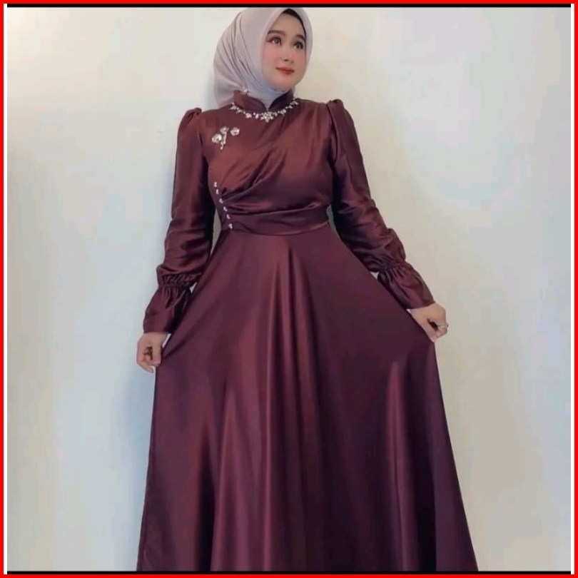 Queen Dress Satin Velvet Mix Payet Premium Gaun Pesta Brsmaid Viral Gamis Kondangan Wanita Terbaru 2025 Dress Polos Wani