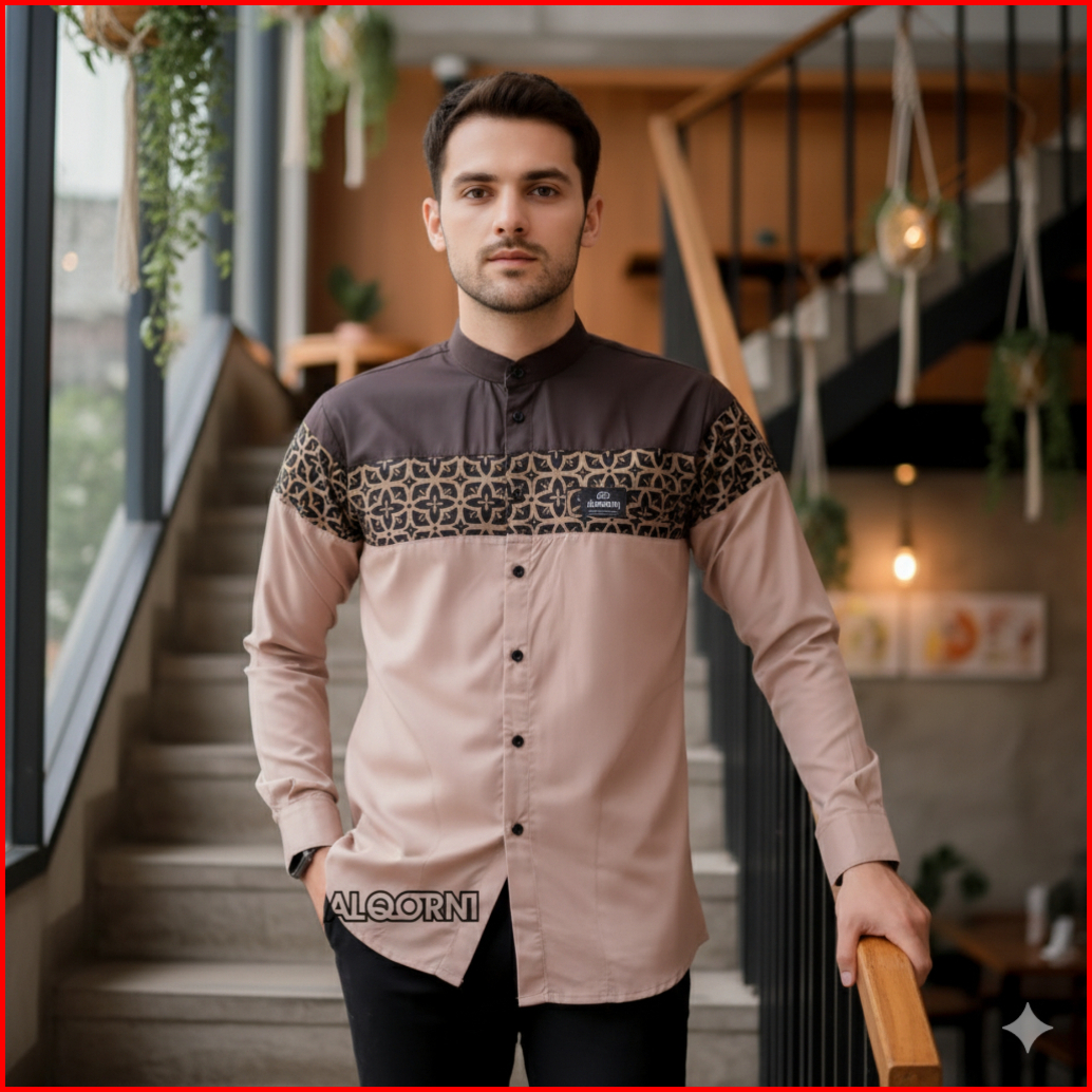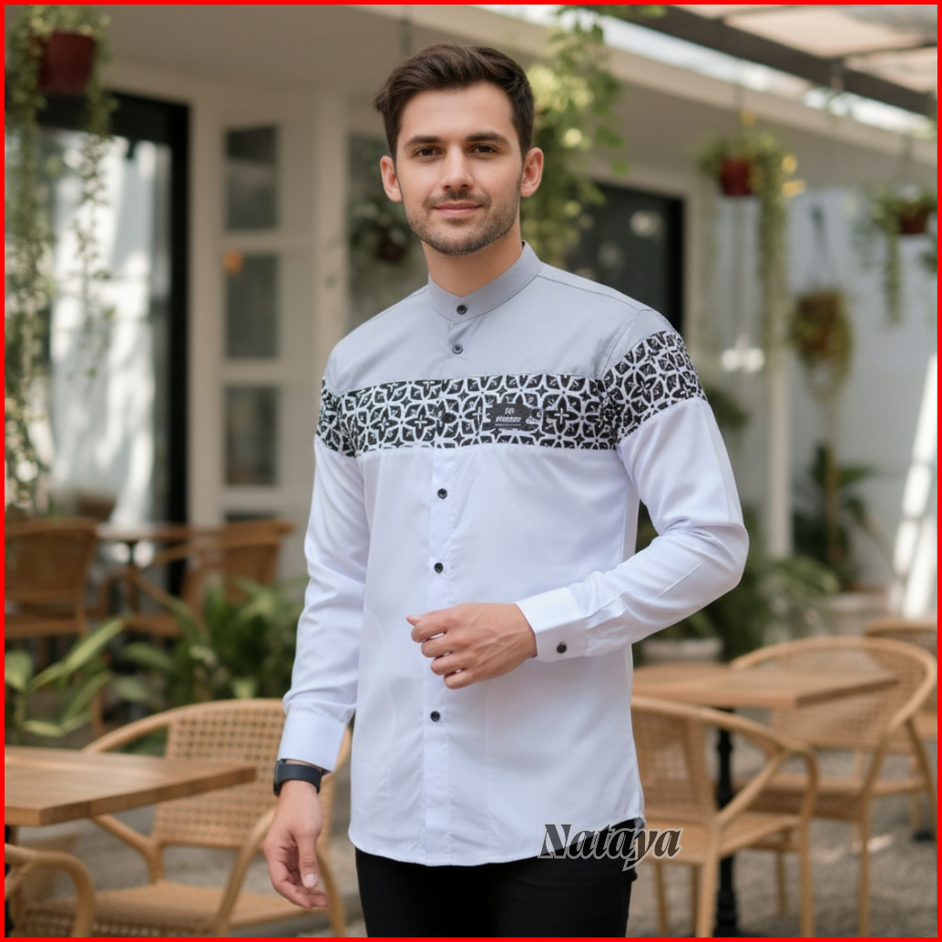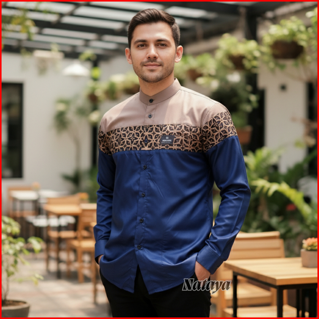 Baju Koko Pria Lengan Panjang Motif Yudhistira Kombinasi Batik Casual Bahan Katun Toyobo Premium