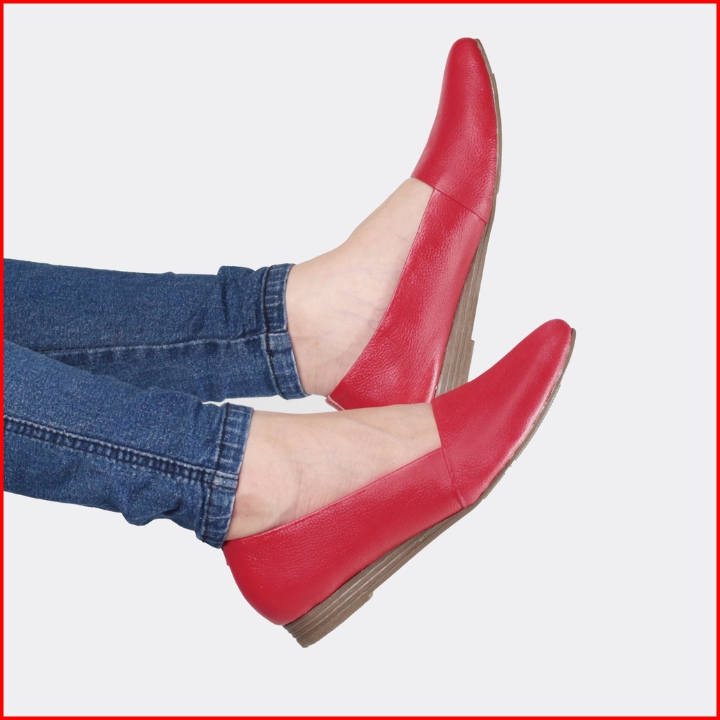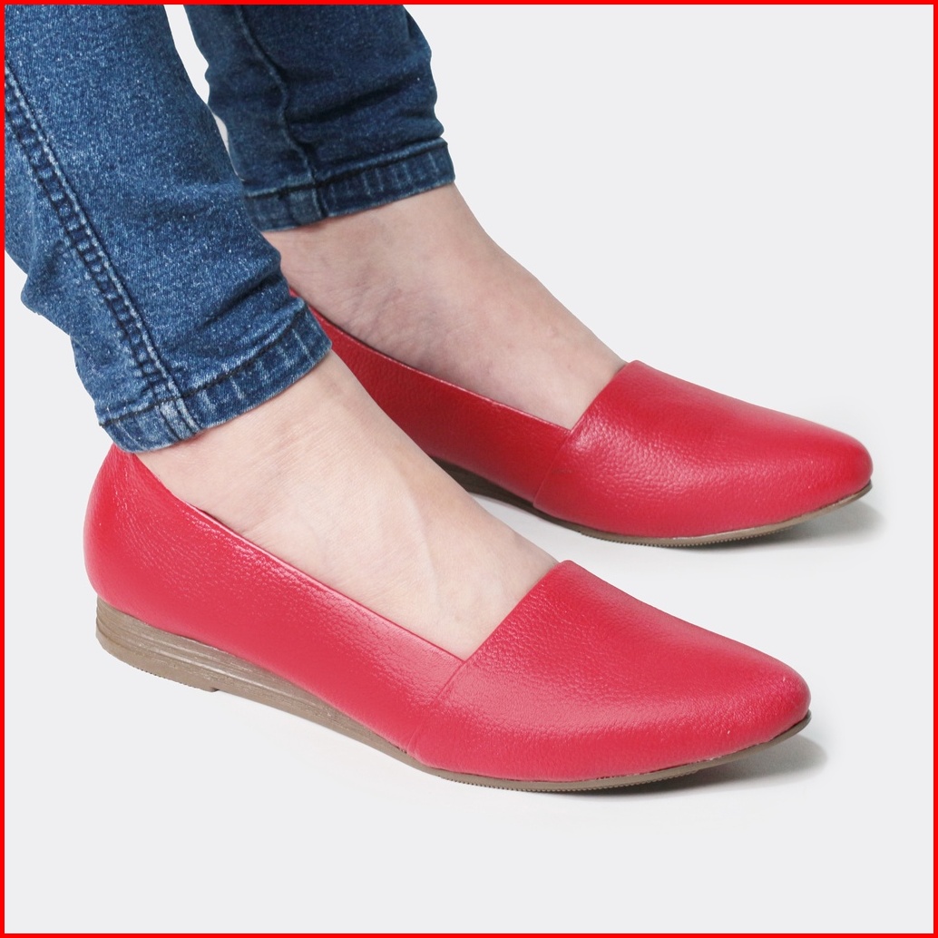 Cevany Sepatu Kerja Wanita Flats Shoes Formal Kulit Asli Geovani S - Pp03 Merah