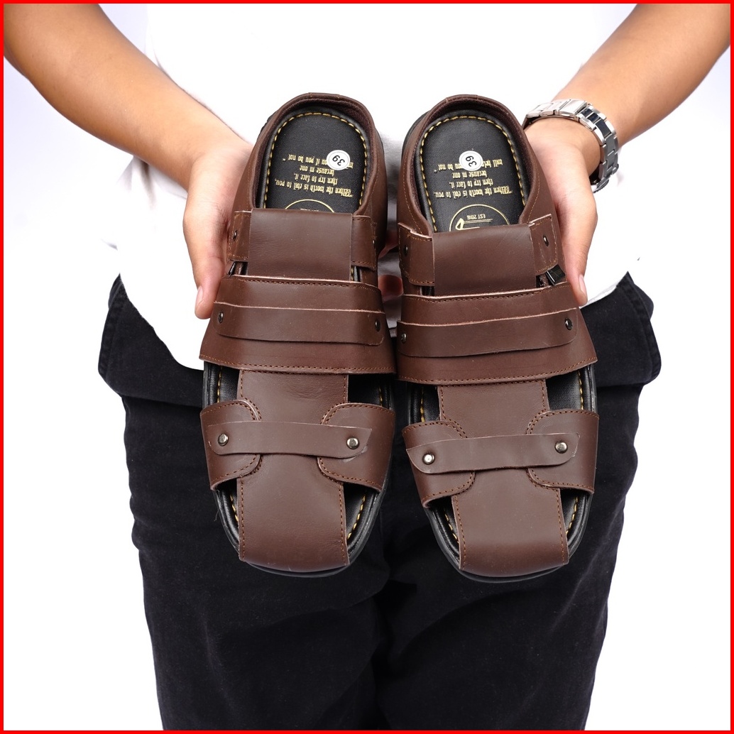 Cevany Sandal Pria Kulit Asli - Borongsong S Bustong Coklat