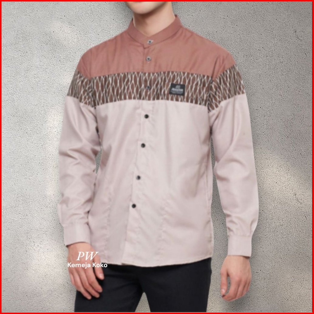 Baju Kemeja Koko Pria Lengan Panjang Spesial Batik Motif Bima Warna Coklat