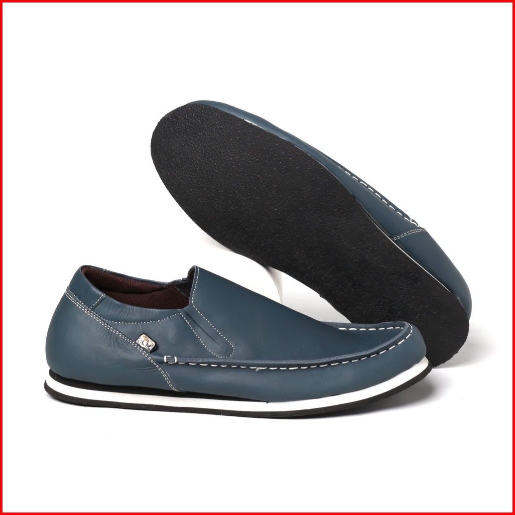Cevany Sepatu Pria Kasual Slip On Kulit Asli Geovani S - G11 Navy