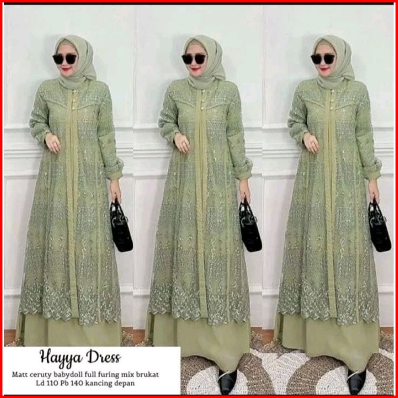 Hayya Dress New Brukat Gamis Muslim Size M L Xl Xxxl Xxxxl