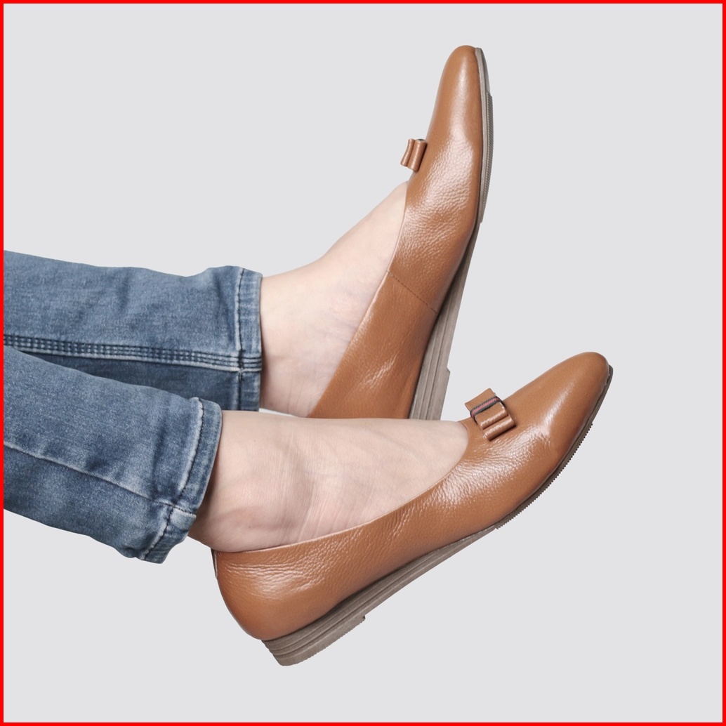 Cevany Sepatu Kerja Wanita Flats Shoes Formal Kulit Asli Geovani S - Pp01 Karamel