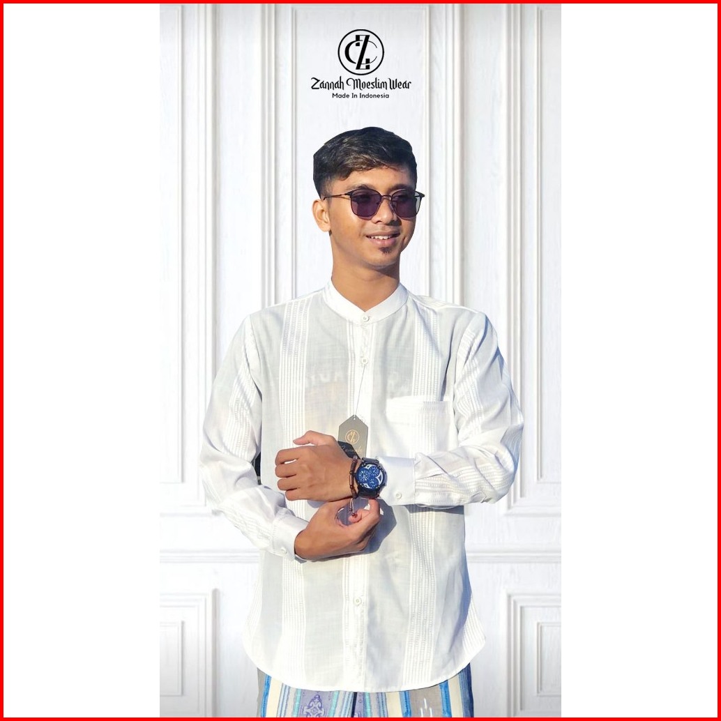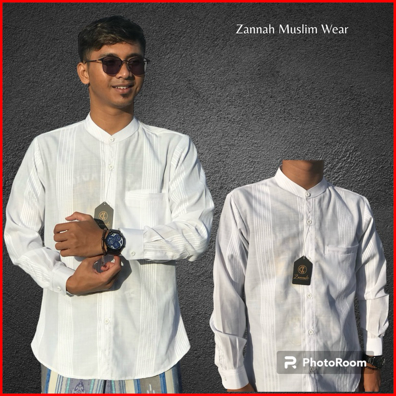 Zannah Baju Koko Pria Lengan Panjang Salur Exclusive Baju Koko Putih Lengan Panjang Premium